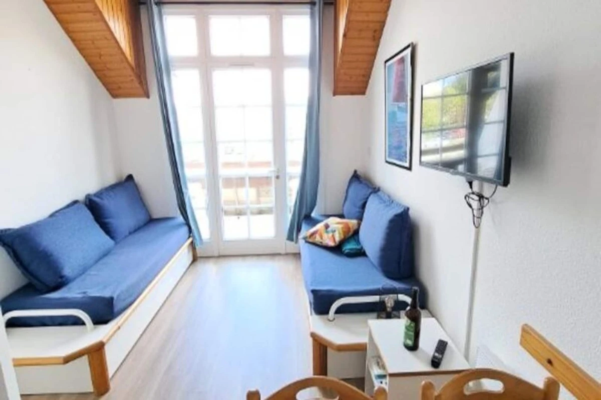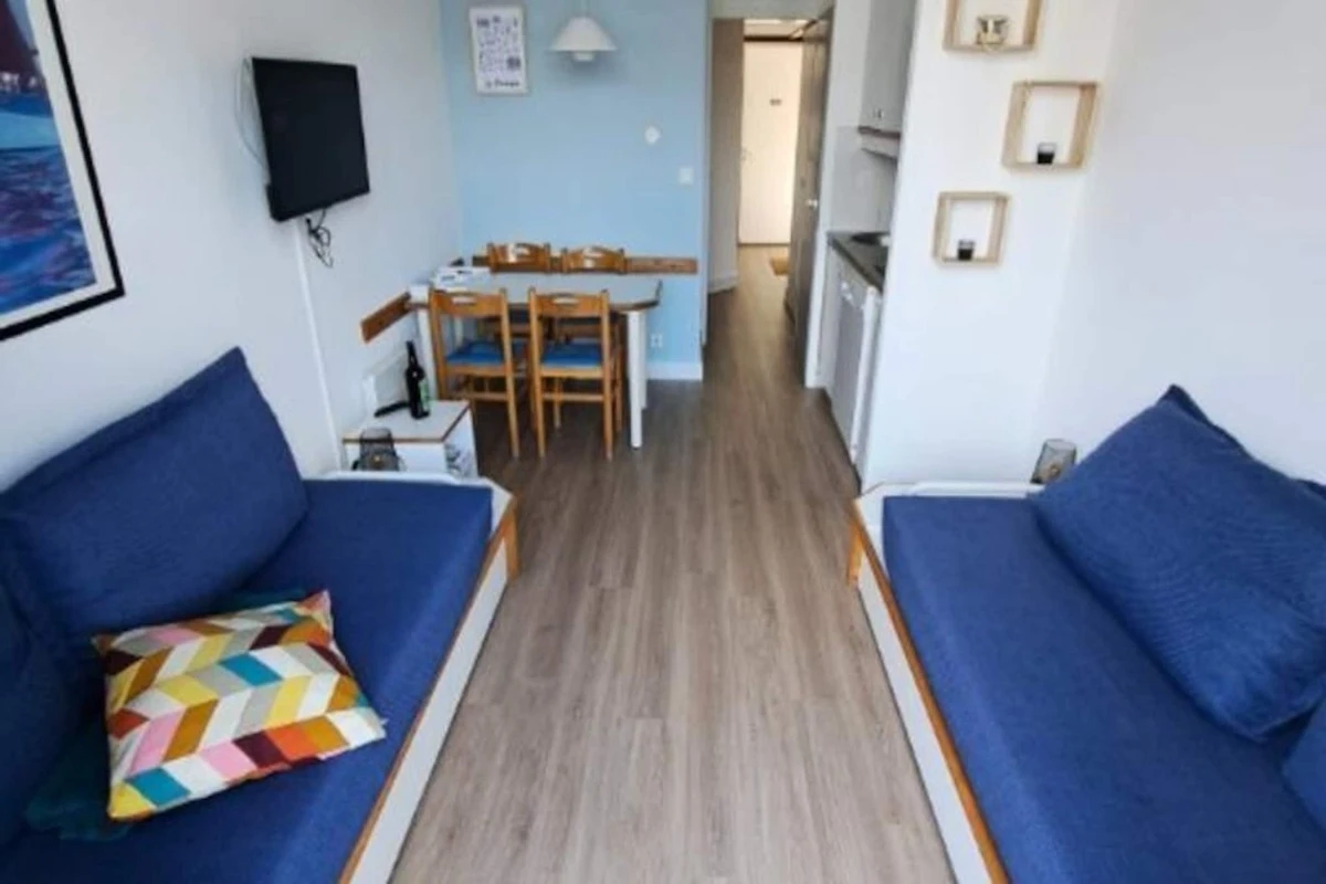Questo affascinante appartamento, recentemente ristrutturato nel 2023, offre sistemazioni confortevoli dotate di comfort moderni. Situato al primo piano, è dotato di soggiorno con due divani letto (di cui uno con letto estraibile), una camera con letto matrimoniale e un balcone arredato per rilassarsi all'aria aperta. La struttura accetta animali domestici (a pagamento) e fornisce l'accesso alla connessione Wi-Fi e un kit per bambini su richiesta. Lenzuola e asciugamani sono disponibili a un costo aggiuntivo, mentre la pulizia di fine soggiorno è obbligatoria e pagabile all'arrivo.