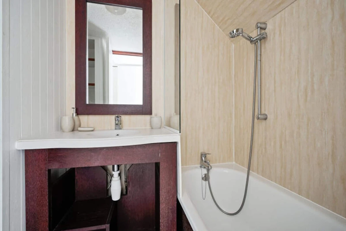 Questo delizioso appartamento può ospitare fino a 5 persone ed è dotato di una camera matrimoniale, un'accogliente cabina con letti a castello e un soggiorno con divano letto e letto estraibile. Offre due bagni, uno con doccia e l'altro con vasca-doccia e WC, oltre a servizi igienici separati. Gli animali domestici sono i benvenuti con un costo aggiuntivo e i kit per bambini sono disponibili su richiesta. Il parcheggio esterno è gratuito, soggetto a disponibilità. I servizi opzionali includono Wi-Fi, noleggio di biancheria da letto e asciugamani e pulizia di fine soggiorno per una maggiore comodità.