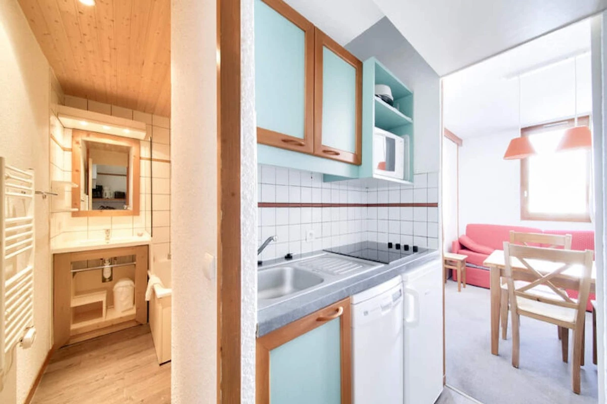 Questo grazioso monolocale, situato al 4° piano di uno chalet in legno e pietra, è predisposto per ospitare fino a 4 persone. Dispone di un divano letto e due letti estraibili, perfetti per famiglie o piccoli gruppi. L'appartamento offre accesso diretto alle piste e un balcone con vista mozzafiato sulla valle. Gli animali domestici sono ammessi, previo pagamento di un supplemento, ma i kit per bambini non sono disponibili a causa dei protocolli sanitari. È disponibile un parcheggio coperto, gratuito nei mesi estivi.