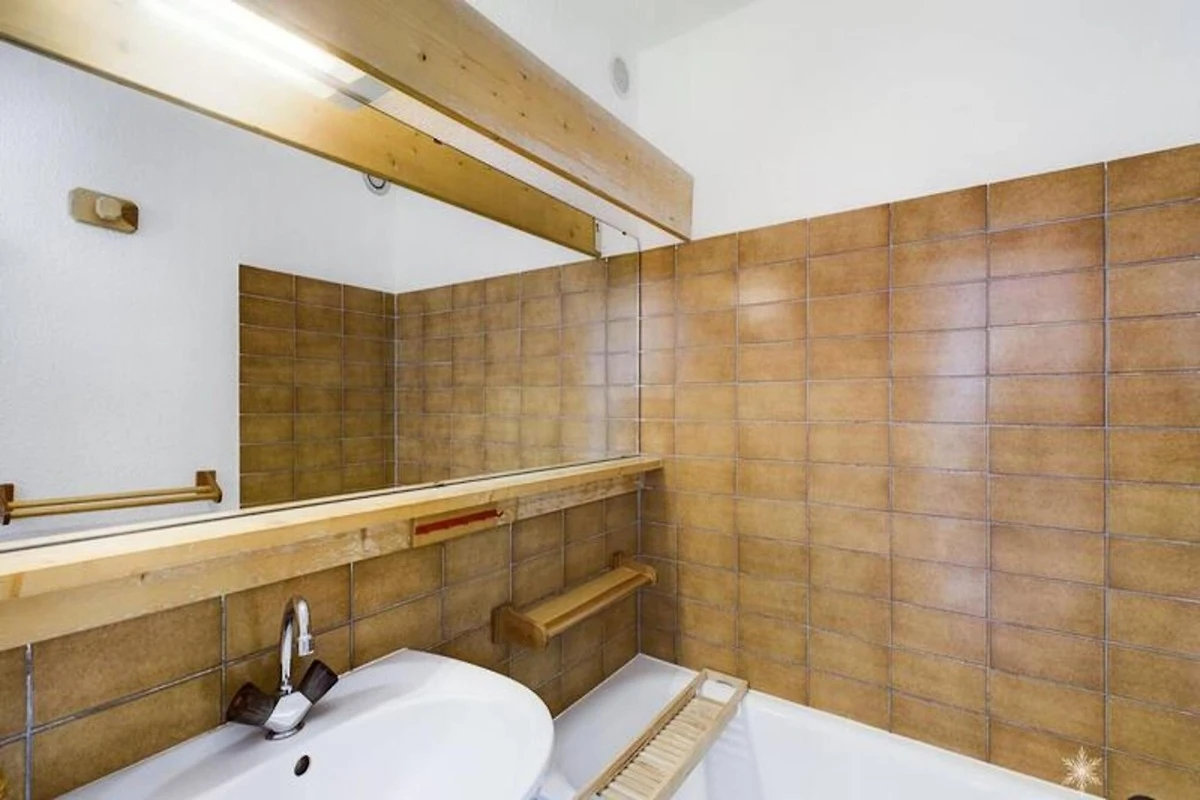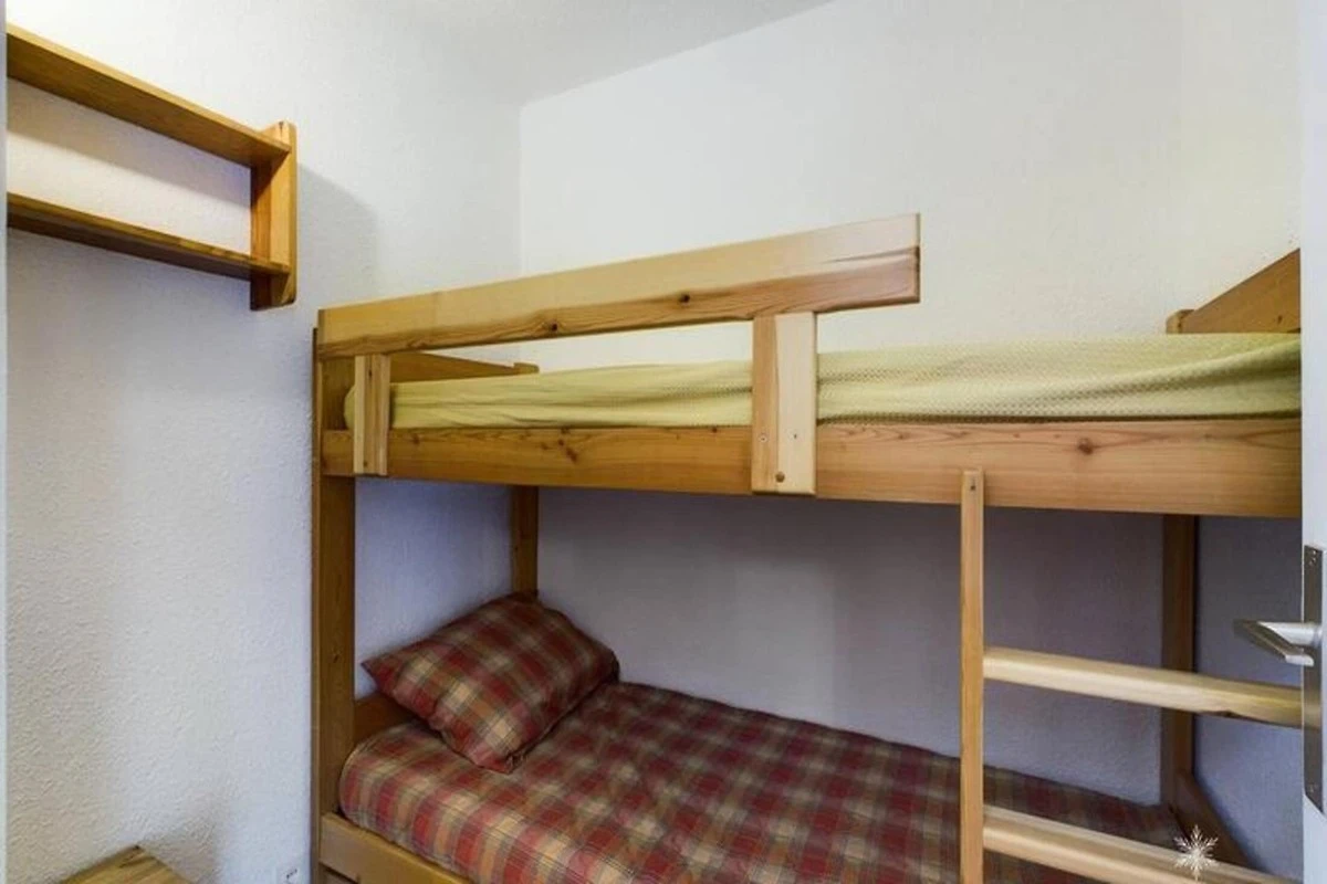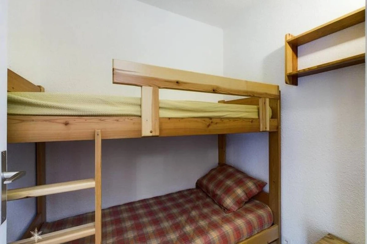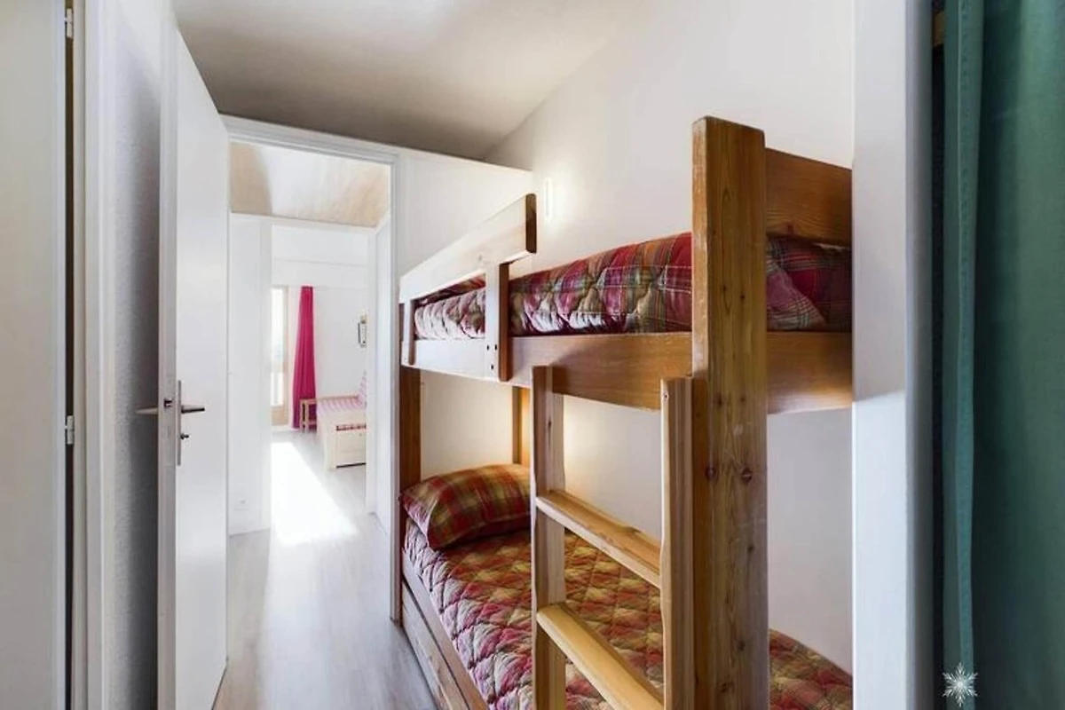 L'appartamento è stato recentemente aggiornato per l'inverno 2022-2023 con vernice fresca e nuovo pavimento in parquet laminato. Comprende un ingresso con due letti a castello, una cabina con altri due letti a castello e un soggiorno con un divano letto convertibile per due persone. L'angolo cottura è dotato di due piastre elettriche, un mini-forno, un frigorifero, una lavastoviglie e una cappa aspirante. Un bagno e una toilette separata completano i servizi. La pulizia di fine soggiorno, le lenzuola e gli asciugamani non sono inclusi nel prezzo di affitto e sono disponibili pagando un costo aggiuntivo in loco.
