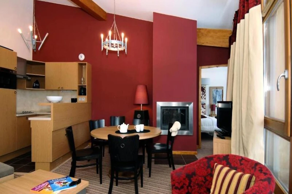 , Soggiorno(divano letto doppio, TV, tavolo da pranzo), Cucina separata(bollitore, tostapane, caffettiera, forno a microonde, lavastoviglie, frigorifero), Camera da letto(letto matrimoniale), Camera da letto(letto matrimoniale), Bagno(doccia, lavandino), stanza fitness, Parcheggio, Trekking, TV, caminetto, sauna, Asciugamani inclusi
