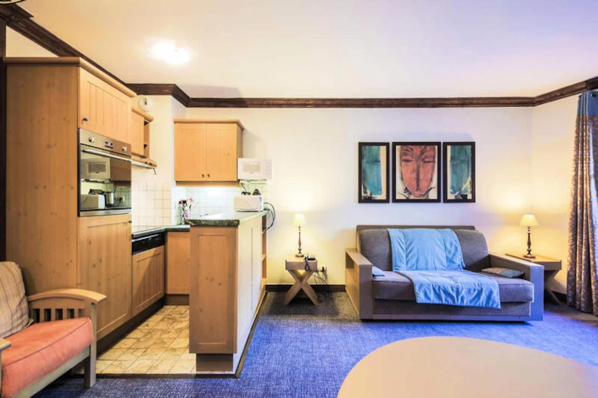 L'appartamento ט dotato di una cucina completamente funzionale, che consente agli ospiti di preparare i propri pasti con facilitא. Il bagno e il WC separato aggiungono ulteriore comfort e privacy. Gli ospiti hanno inoltre accesso ai servizi in loco, tra cui una piscina esterna riscaldata e un'area spa. Per chi viaggia in auto ט disponibile il parcheggio a pagamento e vengono offerti numerosi servizi per migliorare il soggiorno.
