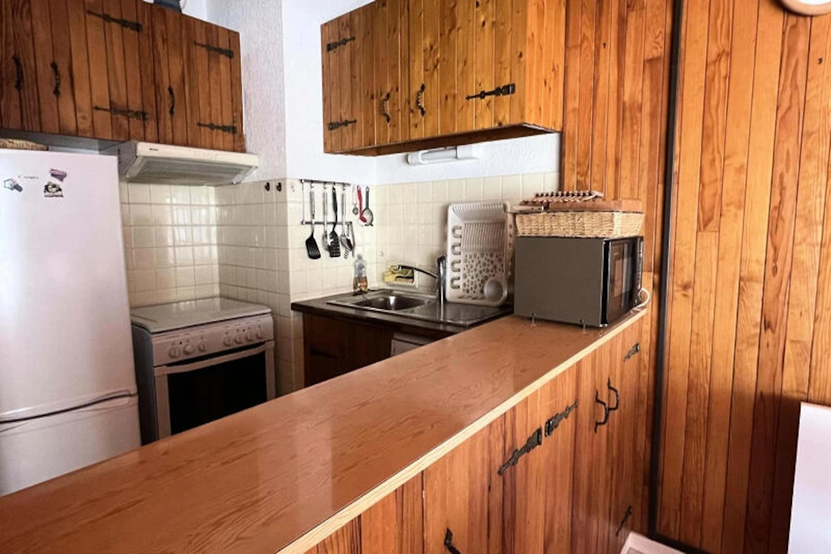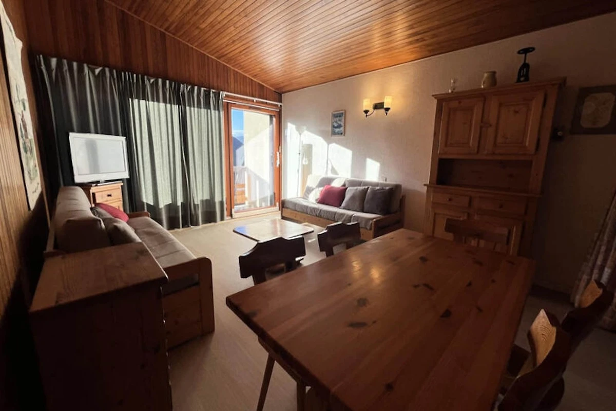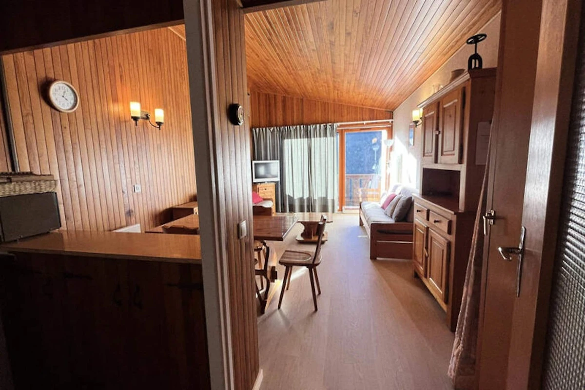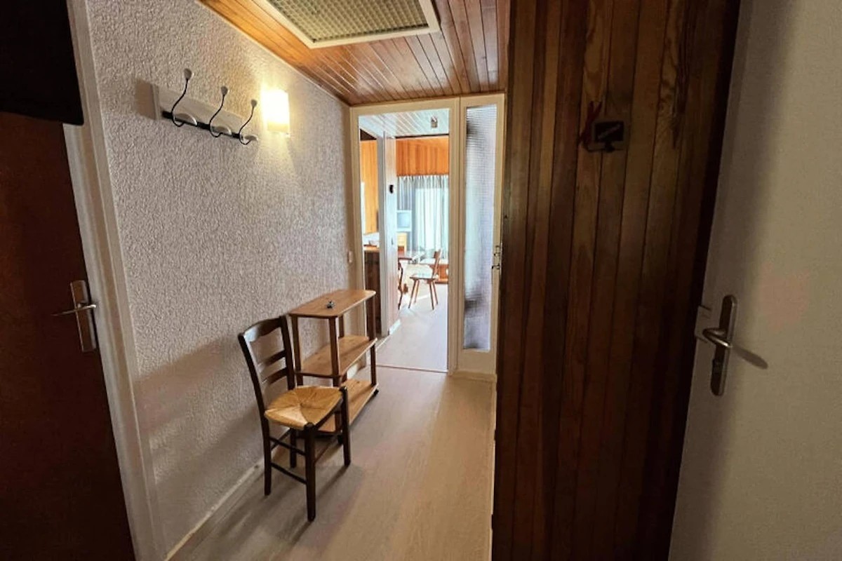 Questo grazioso appartamento, situato all'ultimo piano di un residence costruito nel 1973, offre uno spazio accogliente e funzionale di 51 m², che può ospitare da 4 a 5 persone. Dispone di una camera con 2 letti singoli e 2 letti a castello, e di un divano letto nel soggiorno. L'appartamento comprende un bagno con WC, una cucina completamente attrezzata e un balcone esposto a sud con una splendida vista sulle montagne.