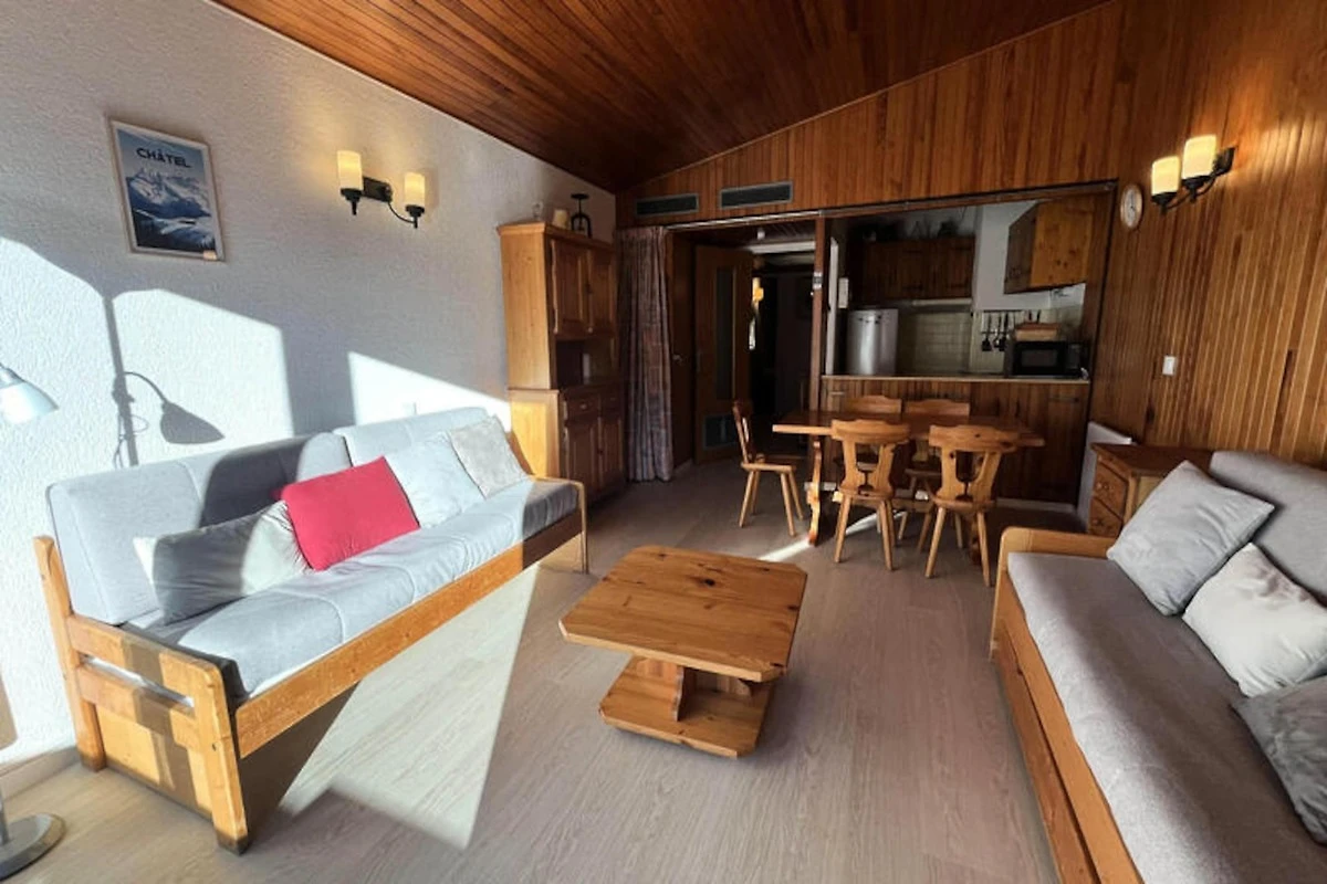 La cucina dell'appartamento è completamente attrezzata per soddisfare tutte le vostre esigenze di ristorazione, con piano cottura, forno, microonde, lavastoviglie, bollitore, macchina per il caffè, macchina per raclette e macchina per fonduta. Questo lo rende perfetto per preparare i pasti dopo una lunga giornata sugli sci. A disposizione degli ospiti anche un parcheggio esterno in comune, a soli 30 metri dal residence. Con la sua comoda posizione, i servizi pratici e la politica in cui sono ammessi gli animali domestici, questo appartamento offre una base confortevole per il vostro soggiorno a Châtel.