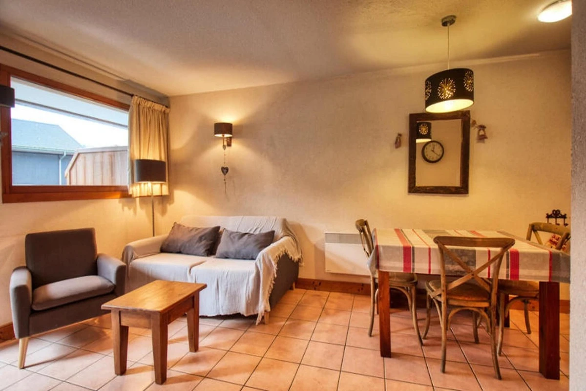Questo accogliente appartamento, situato nel cuore di Morillon 1100, ט perfetto per 4 persone, con la possibilitא di ospitarne 6 con posti letto aggiuntivi nel soggiorno. Dispone di una camera con un letto matrimoniale e un letto a castello (adatto per bambini sopra i 6 anni), un bagno con vasca e servizi igienici separati. La zona giorno comprende un divano letto, una TV e una cucina completamente attrezzata. La biancheria da letto viene fornita per tutti i letti, compresi coprimaterassi, piumini e cuscini. Nell'appartamento sono ammessi animali domestici e non fumatori, garantendo un ambiente pulito e fresco.