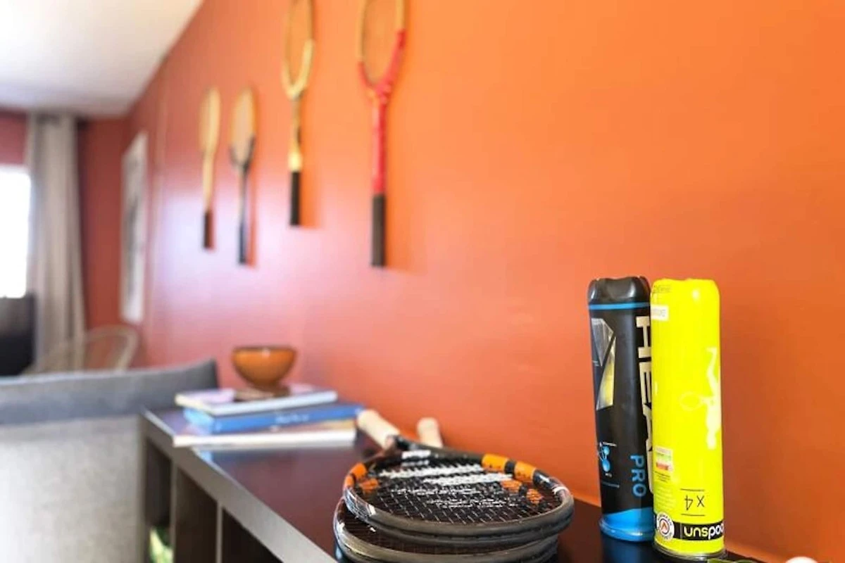 Stehen Ihnen aktuell zur Verfügung: Ein privater Parkplatz 🚘 (Achtung: eingeschränkter Parkplatz, schwierige Zufahrt für 4x4/SUV/Limousine), Bettwäsche und Handtücher, Tennisschläger, kostenloses WLAN, Bügeleisen und -brett. Bügeln, eine Waschmaschine usw.