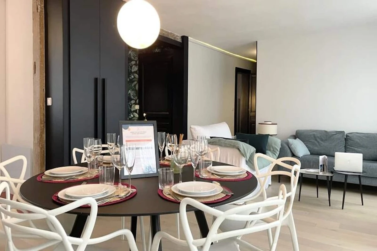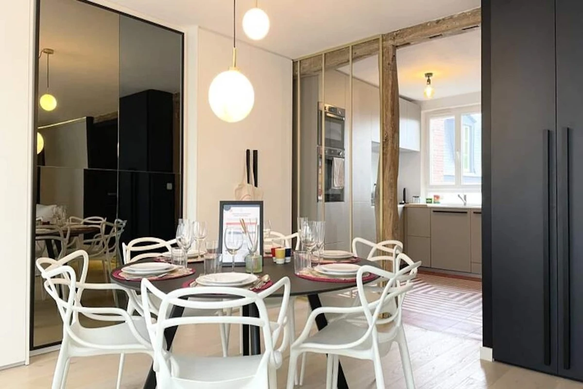 Situato nel cuore di Rouen, l'appartamento si trova a pochi passi dalla stazione ferroviaria SNCF e dalla famosa Place du Vieux Marché. La sua posizione centrale offre un facile accesso a numerosi negozi, ristoranti e attrazioni culturali. L'iconico Gros Horloge (Grande Orologio) è a meno di 5 minuti a piedi, rendendolo una base ideale per esplorare il patrimonio storico e culturale della città.