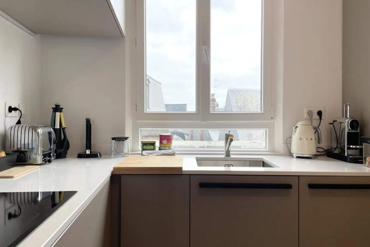 L'appartamento offre una cucina in stile americano completamente attrezzata con elettrodomestici moderni, tra cui frigorifero, forno, piano cottura a induzione, lavastoviglie e macchina da caffè Nespresso. Un ampio soggiorno offre ampio spazio per il relax e la cena. La master suite dispone di un ampio spogliatoio e di una doccia in stile italiano. Sono inoltre disponibili una lavatrice e la connessione Wi-Fi gratuita. Siete pregati di notare che il parcheggio non è fornito, ma nelle vicinanze è disponibile un parcheggio pubblico.