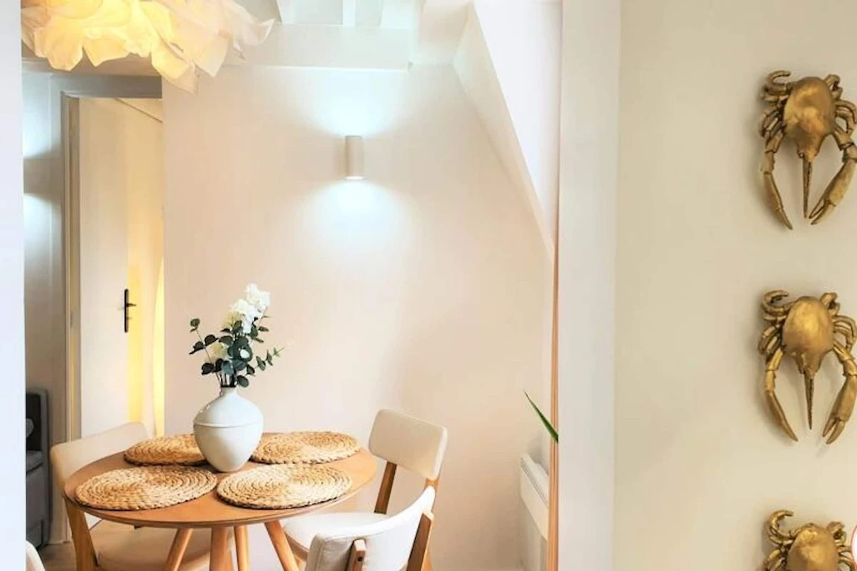 Questo grazioso appartamento, situato nel cuore di Le Havre, puע ospitare comodamente fino a 5 persone. L'appartamento dispone di una camera da letto con un letto di alta qualitא da 160x200 cm e di un accogliente soggiorno con un divano letto. ָ pet-friendly e ammette animali di piccola taglia (sotto i 10 kg) dietro pagamento di un piccolo supplemento. L'appartamento offre tutto l'essenziale per un soggiorno confortevole, tra cui aria condizionata, connessione Wi-Fi gratuita, TV HD e lavatrice. La biancheria da letto e da bagno viene fornita per vostra comoditא.