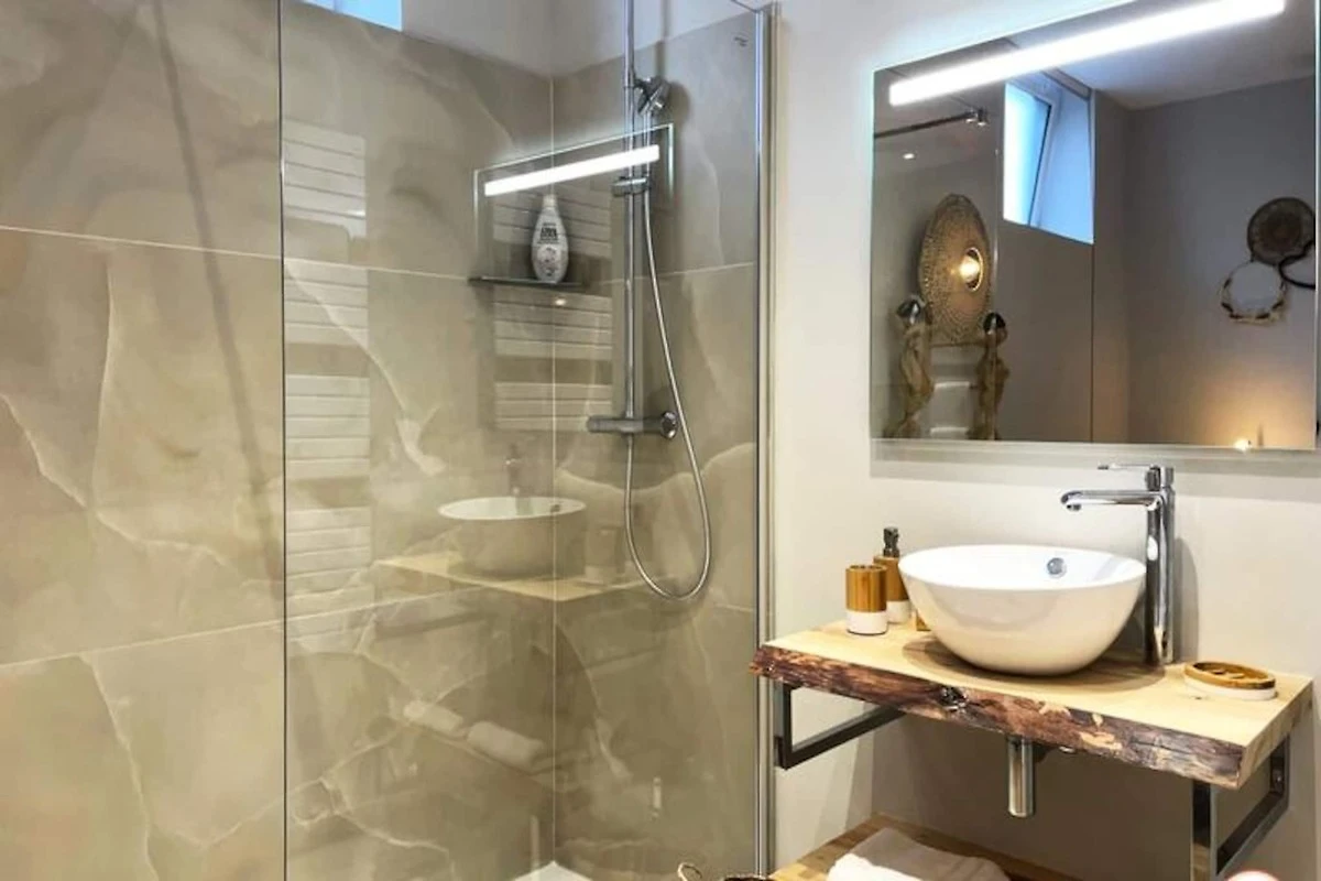 Questo accogliente appartamento in stile loft offre il rifugio perfetto per il relax o per fughe romantiche. Lo spazio dispone di una lussuosa vasca idromassaggio con getti d'acqua e d'aria, una loggia privata e biancheria da letto queen size di fascia alta. Gli ospiti possono divertirsi con un videoproiettore, Chromecast e accedere a servizi di streaming come Netflix e Amazon Prime. Una Smart TV e un altoparlante Bluetooth migliorano l'atmosfera accogliente, mentre tocchi premurosi come la biancheria da bagno e il caffט assicurano un soggiorno confortevole. Si prega di notare che gli animali non sono ammessi e l'appartamento ט per non fumatori.