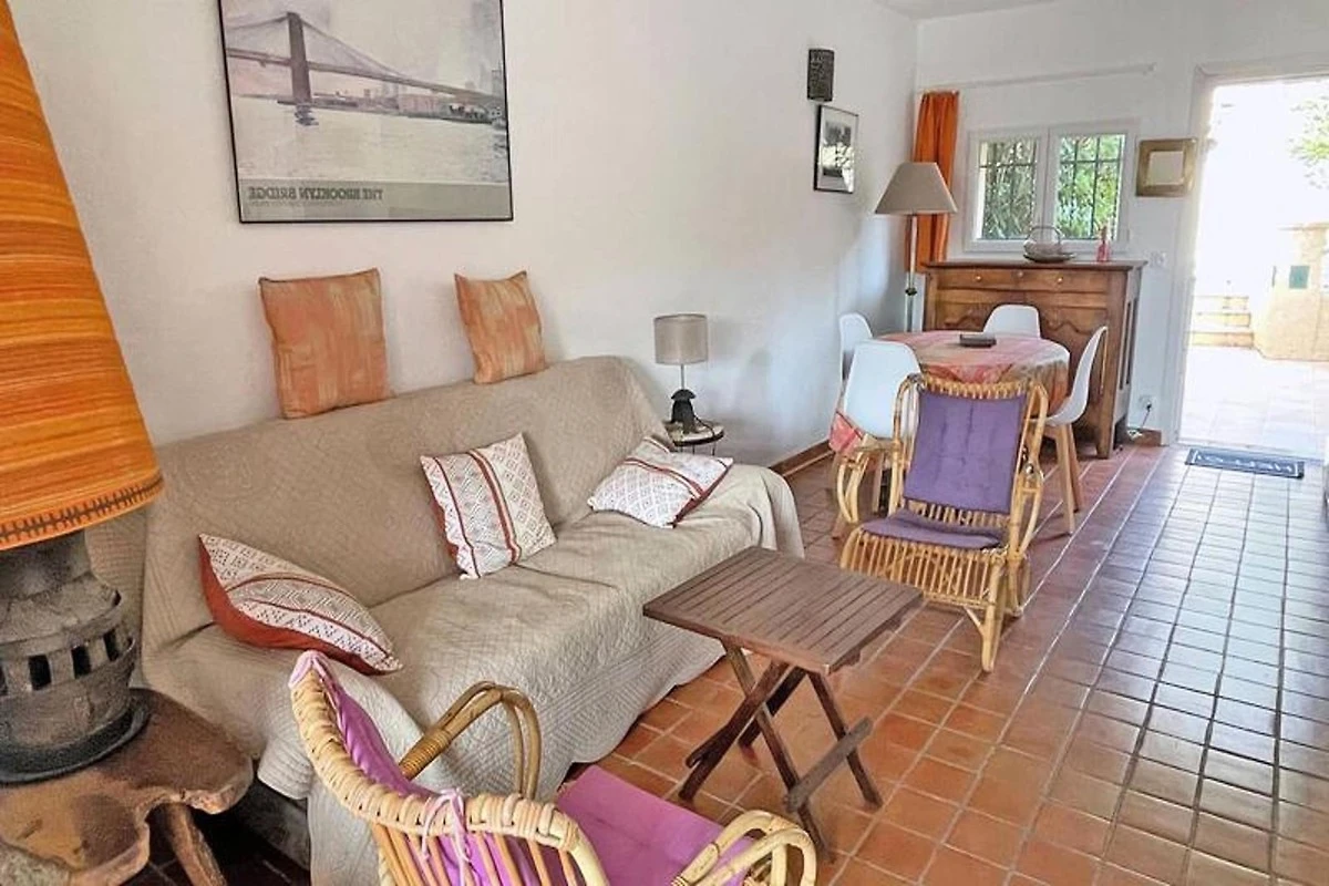 Questa bastide bifamiliare offre una sistemazione affascinante e spaziosa, perfetta per un massimo di 4 persone. Con due camere da letto e un divano letto nel soggiorno, è ideale per una famiglia o un piccolo gruppo. La casa è completamente attrezzata con aria condizionata nel soggiorno e in una camera da letto, garantendo comfort durante tutto il soggiorno. Il piano terra comprende una cucina attrezzata con piano cottura a 3 fuochi, forno, frigo-congelatore, lavastoviglie e utensili vari, oltre ad un retrocucina con lavatrice. Il soggiorno climatizzato dispone di divano-letto, poltrone, TV e zona pranzo. Esci sulla terrazza per goderti un'area salotto coperta, mobili da giardino e un barbecue a gas con una splendida vista sul mare.