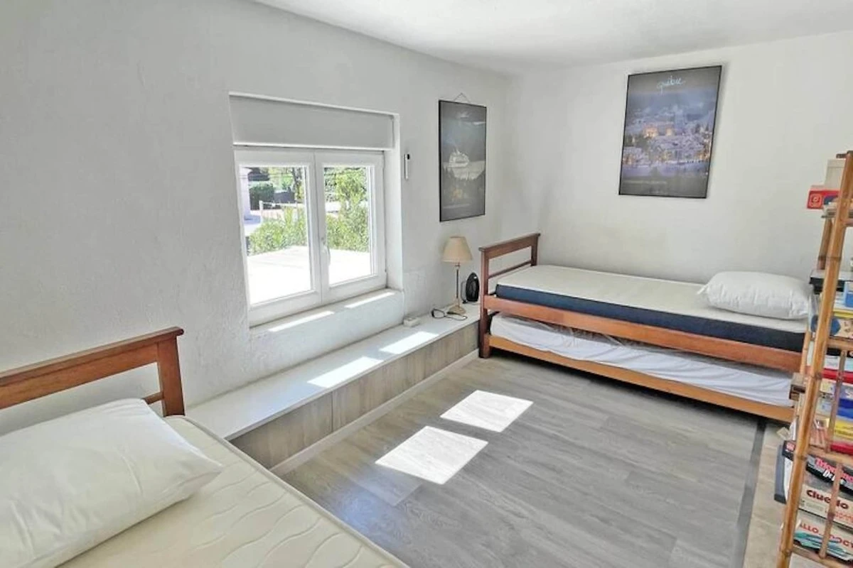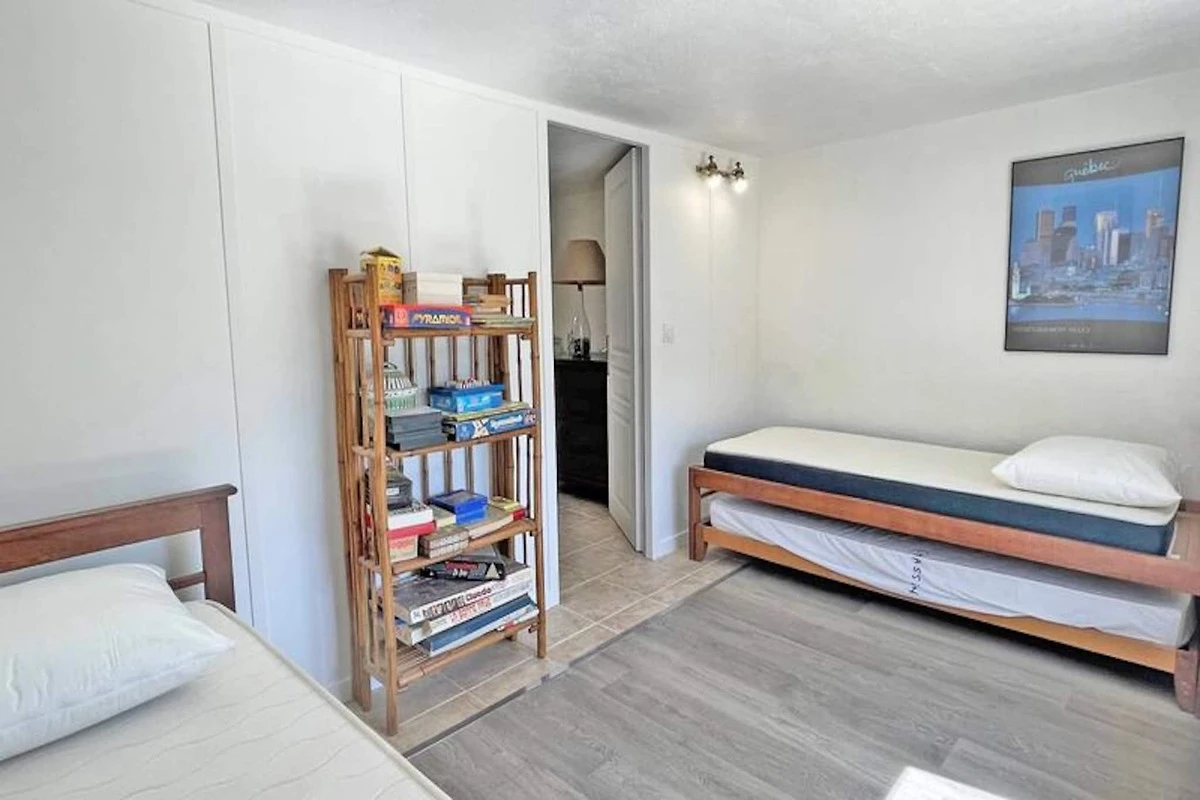 Questo Mazet di 80 m² è perfetto per un massimo di 6 persone e offre uno spazio confortevole per famiglie o amici. Situato a soli 50 metri dalla spiaggia di Nartelle, il piano terra comprende un soggiorno con divano ad angolo, TV e zona pranzo, oltre a una cucina completamente attrezzata con piano cottura a 4 fuochi, forno, lavastoviglie, frigorifero/congelatore, macchina da caffè Nespresso, e altro ancora. A questo livello si trova anche un bagno con doccia, mobile lavabo, WC e lavatrice. Al piano superiore sono disponibili l'aria condizionata e due camere da letto, una con letto matrimoniale e l'altra con due letti singoli.
