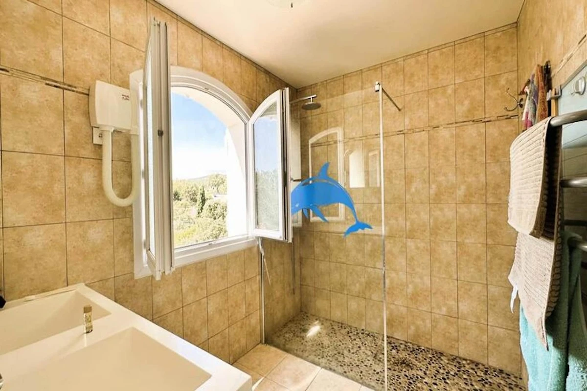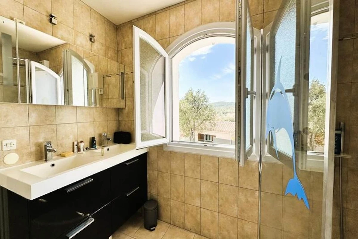 Questa villa in stile provenzale offre un rifugio sereno con ampie vedute delle colline e della macchia circostante, a pochi minuti dalle splendide spiagge della zona. Ideale per un massimo di 8 ospiti, la villa vanta una bellissima piscina, molteplici terrazze e un ambiente tranquillo perfetto per il relax. Goditi i pasti all'aperto, prendi il sole o gioca a bocce mentre ti immergi nelle viste panoramiche e nei suoni della natura.