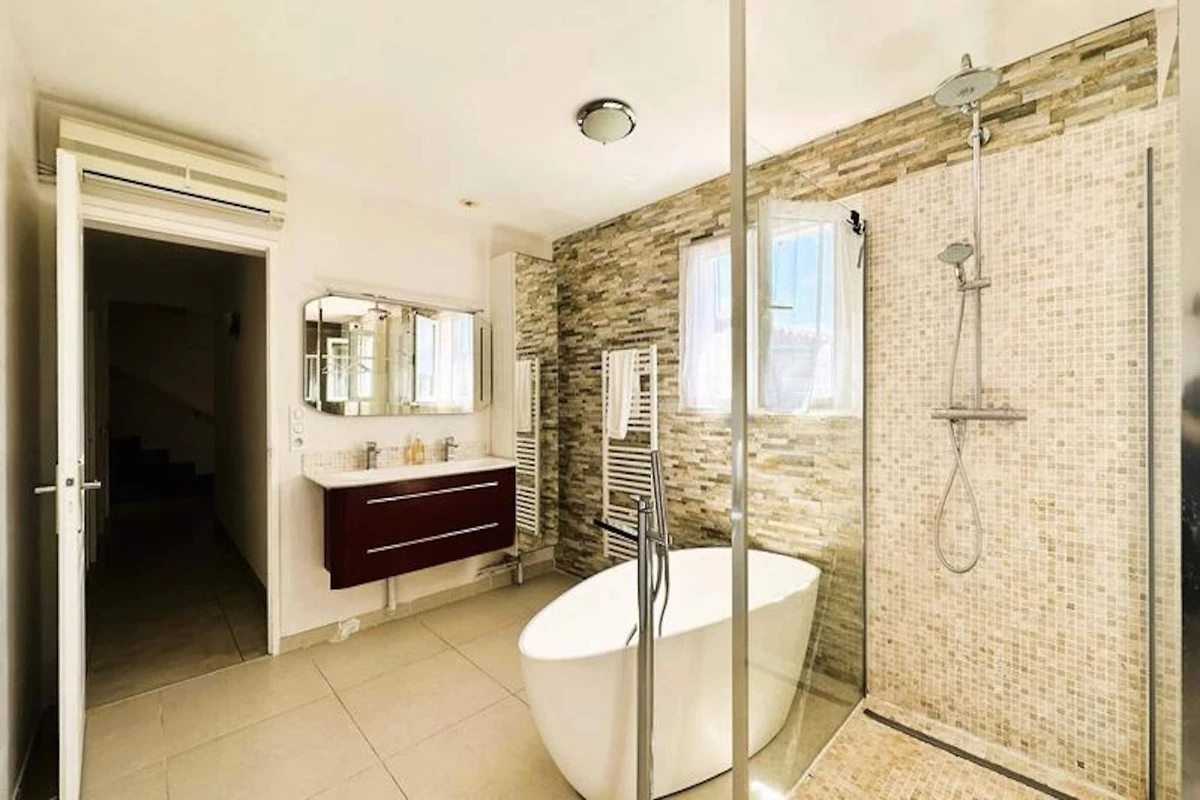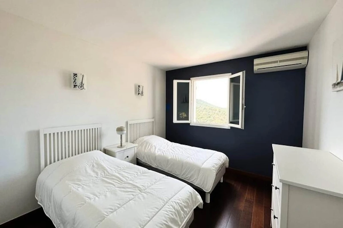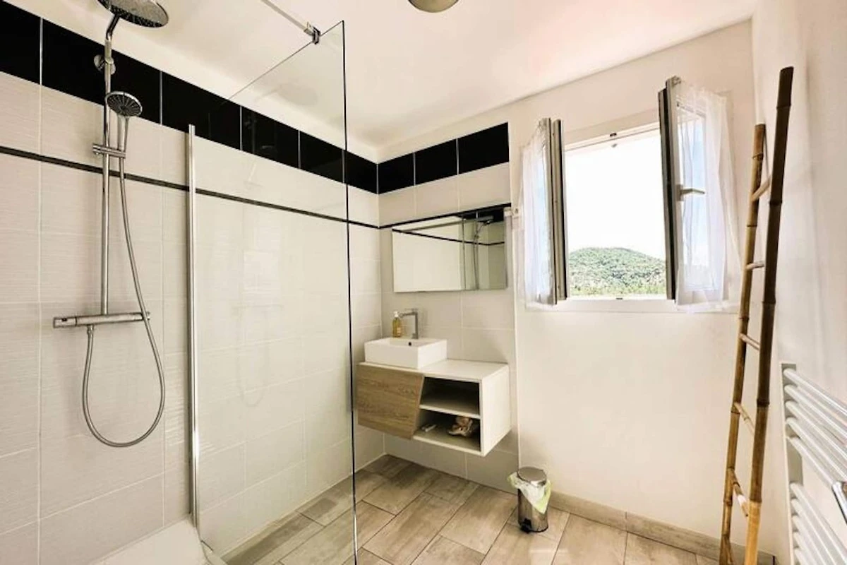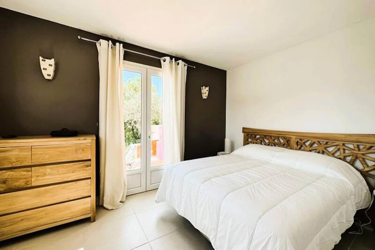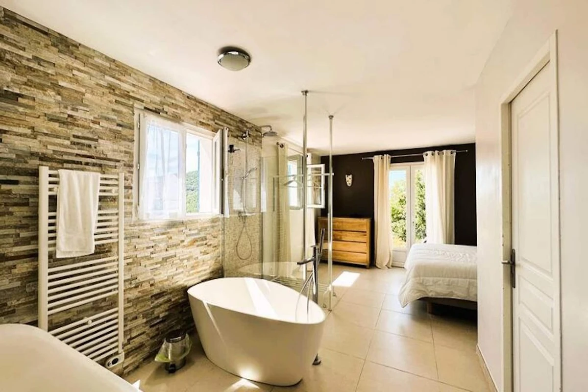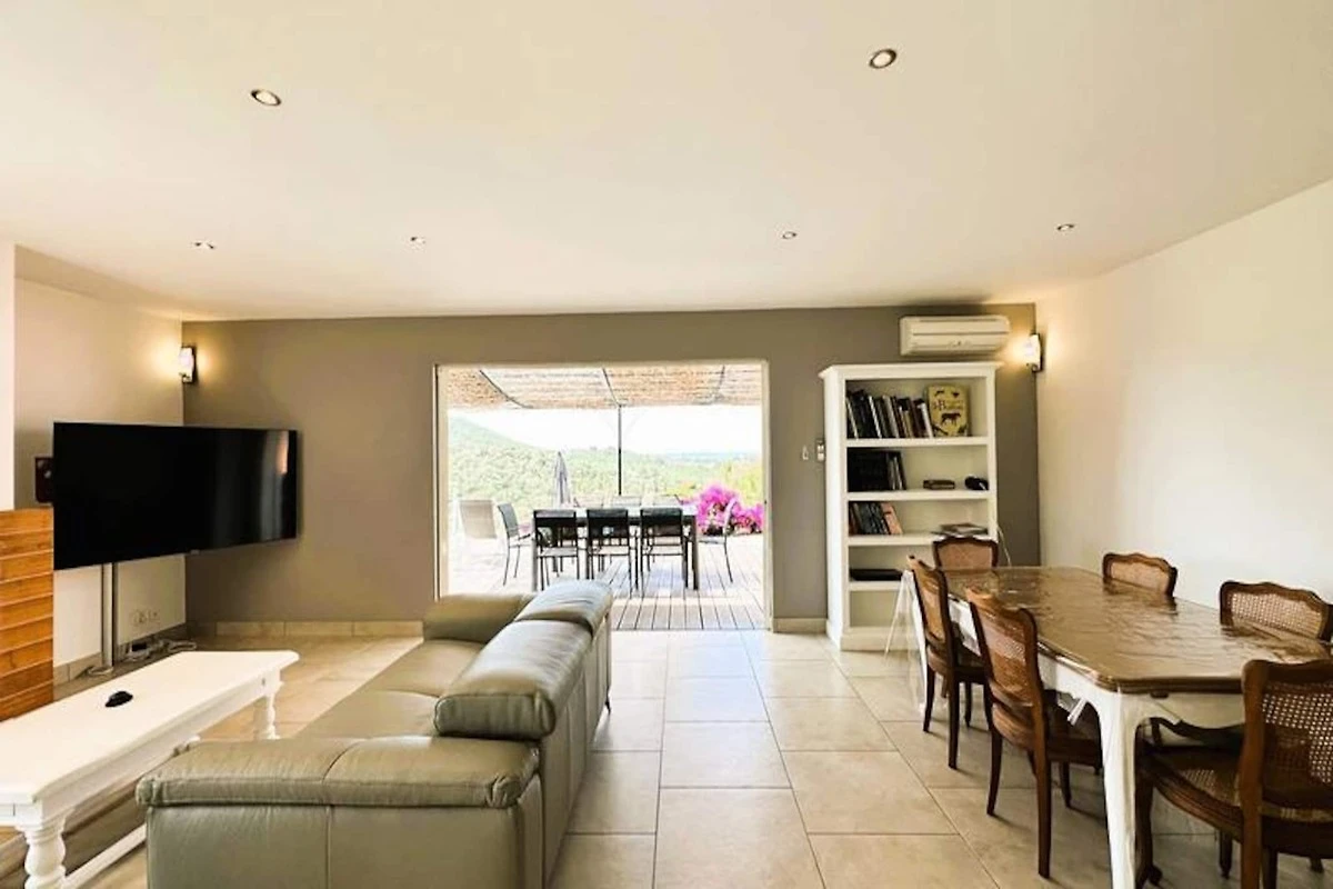 Immersa nel cuore del massiccio dei Maures, questa lussuosa villa offre una fuga indimenticabile circondata da rigogliose colline verdi e viste mozzafiato sul mare. Completamente climatizzata, la struttura dispone di un ampio soggiorno che si apre su terrazze in legno e un'invitante piscina a sfioro. Può ospitare fino a dieci ospiti, comprende una master suite con letto queen-size e accesso alla terrazza privata, due camere da letto al piano superiore (una matrimoniale e una doppia) che condividono un bagno con doccia e una dependance indipendente con due camere da letto aggiuntive, ciascuna con bagno privato. -bagno privato. Questa struttura è per non fumatori, non accetta animali domestici e non è adatta a bambini piccoli o persone con mobilità ridotta.