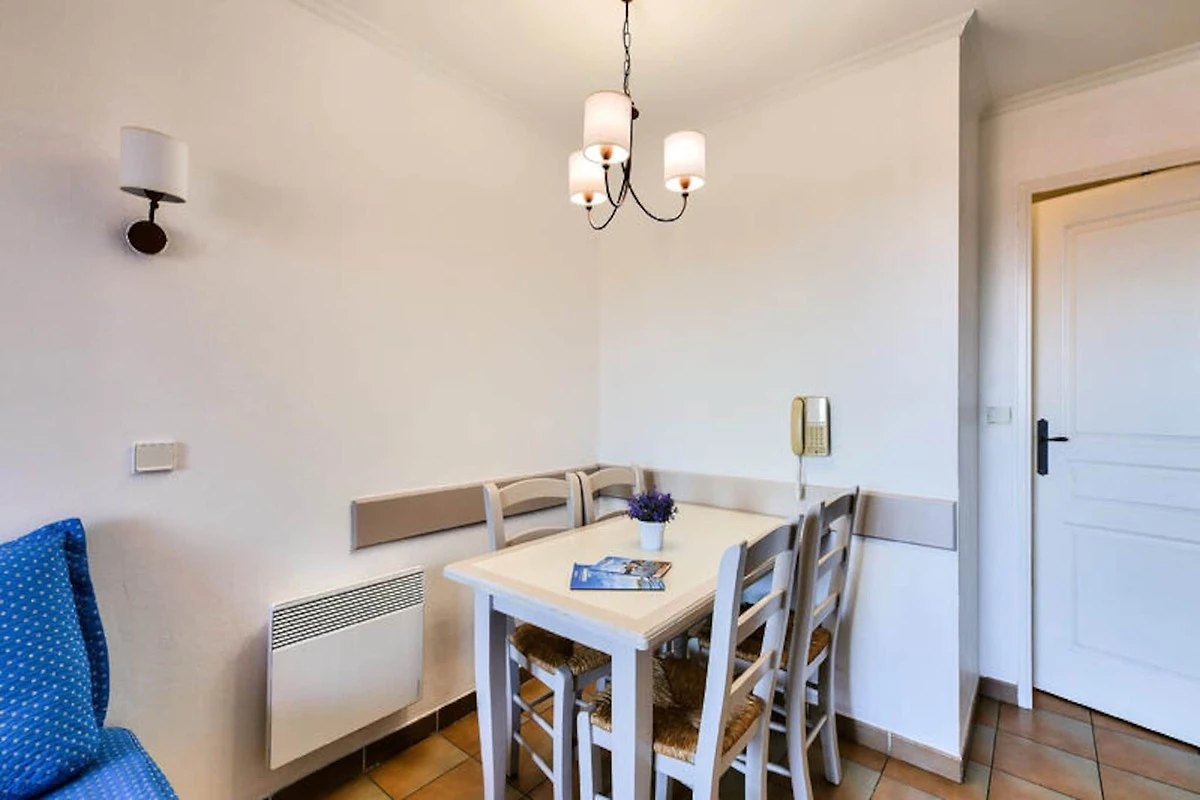 Situata tra il porto turistico e l'antico villaggio di Les Issambres, questa casa vacanza offre un rifugio tranquillo con viste mozzafiato sul Mar Mediterraneo. La residenza, immersa in un giardino ricco di piante del sud, è composta da edifici di 3 o 4 piani, offrendo un'atmosfera affascinante e rilassante. La spiaggia è a soli 100 metri, con accesso diretto al mare, mentre il centro Thalasso del vicino residence Premium Les Calanques des Issambres offre servizi di coccole. Sul posto potrete usufruire di una bella piscina all'aperto non riscaldata con vasca per bambini e lettini al sole.
