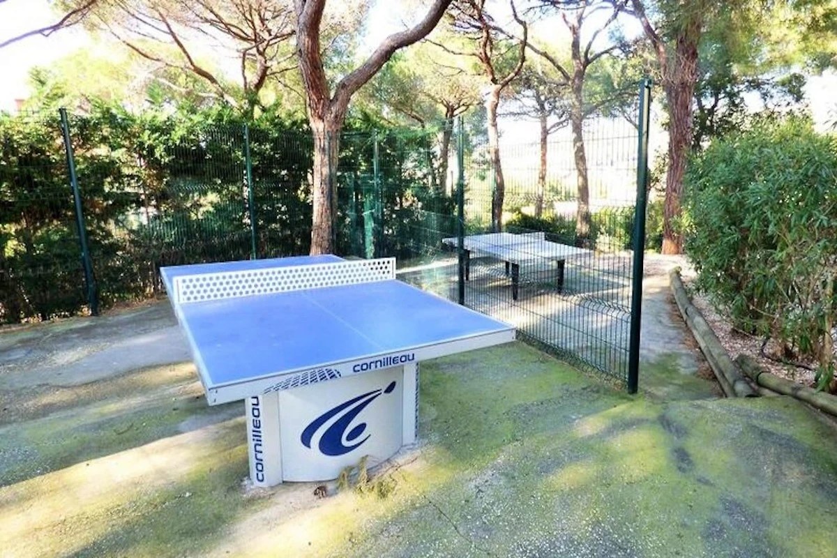 Questa affascinante casa vacanze offre un soggiorno confortevole per un massimo di 6 persone, con 3 camere da letto. La prima camera ha 2 letti a castello (per bambini sopra i 6 anni), la seconda e la terza camera hanno entrambe un letto matrimoniale (140 cm). L'appartamento è per non fumatori e dispone di un parcheggio privato. Gli ospiti possono inoltre usufruire di due piscine, affacciate sul mare, e di una varietà di attività all'aperto come tennis e ping pong.