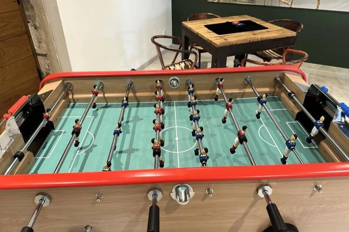 La villa offre anche una cucina completamente attrezzata, una sala giochi e una varietà di spazi esterni, tra cui un cortile ombreggiato e una terrazza. Con una zona barbecue e una fontana, la villa offre l'ambiente ideale per il relax. Goditi il ??comfort di servizi moderni come WiFi, TV e una varietà di aree lounge per rilassarti dopo una giornata di esplorazione.