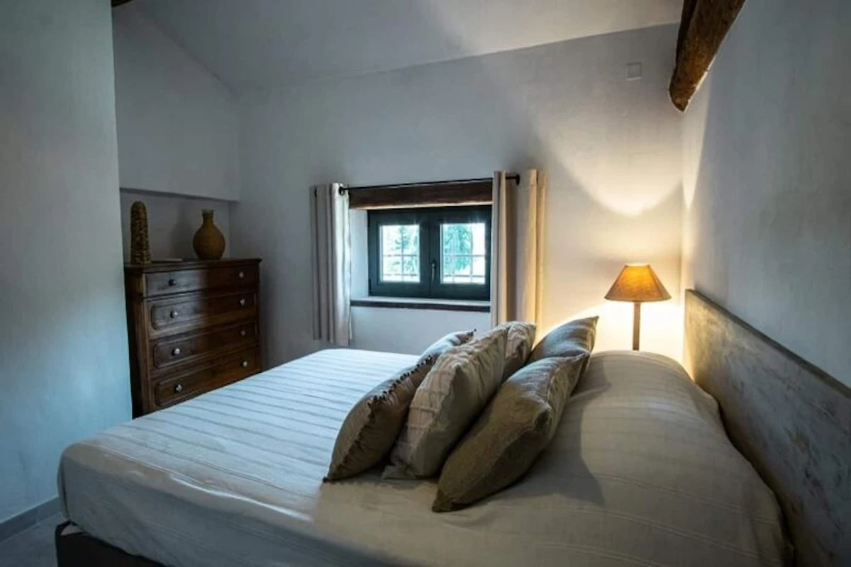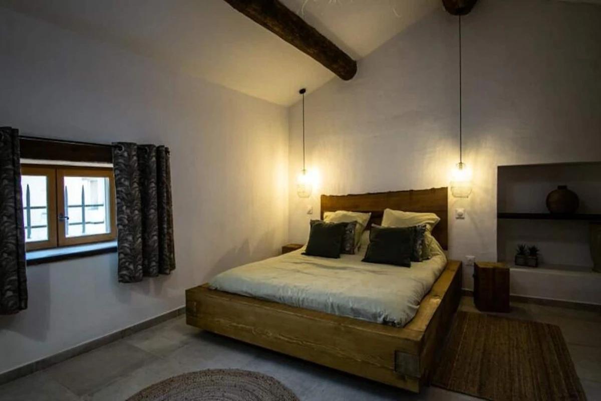 Questa eccezionale fattoria provenzale unisce i comfort moderni al fascino tradizionale. La villa privata climatizzata comprende quattro camere da letto, due bagni e un ampio soggiorno. Circondato da giardini ben curati, dispone di un'ampia piscina privata riscaldata (aperta dal 15 aprile al 15 ottobre) e di una pool house completamente attrezzata. La proprietà è sicura, con accesso tramite un cancello elettrico, offrendo un rifugio tranquillo e in cui sono ammessi gli animali domestici.