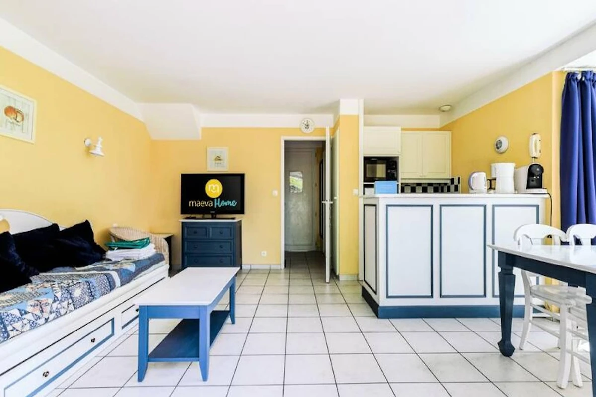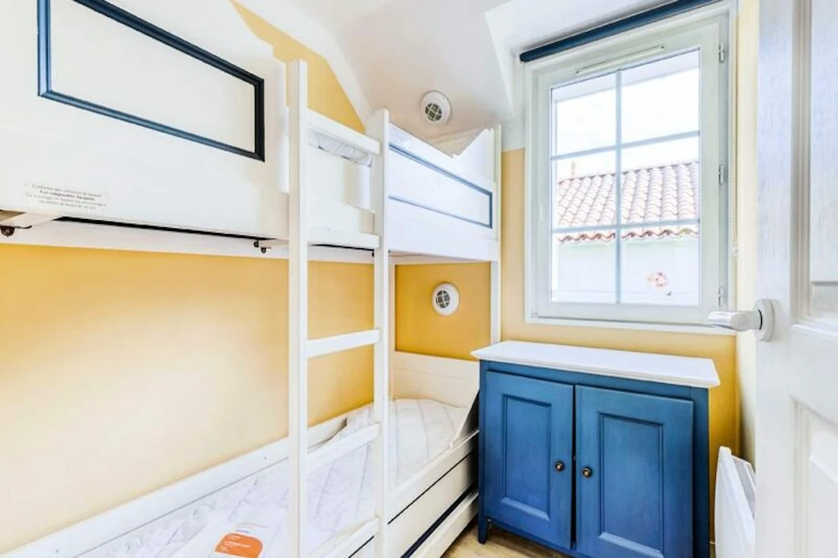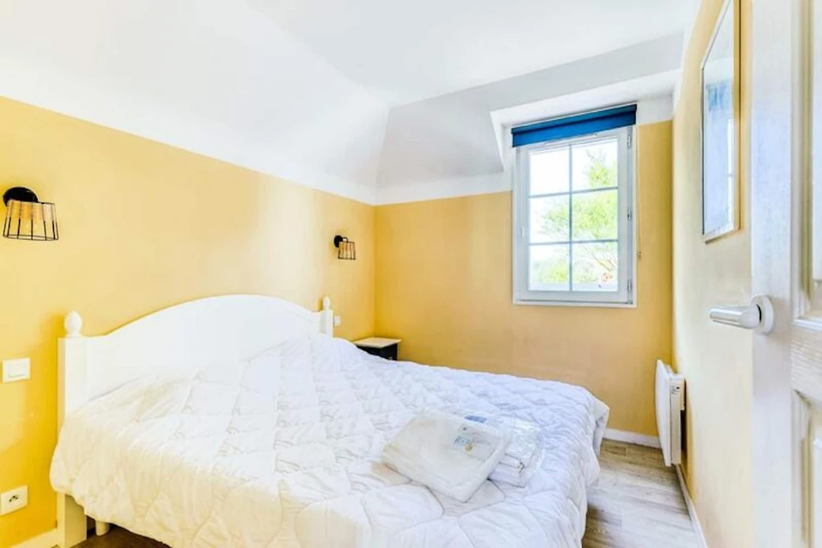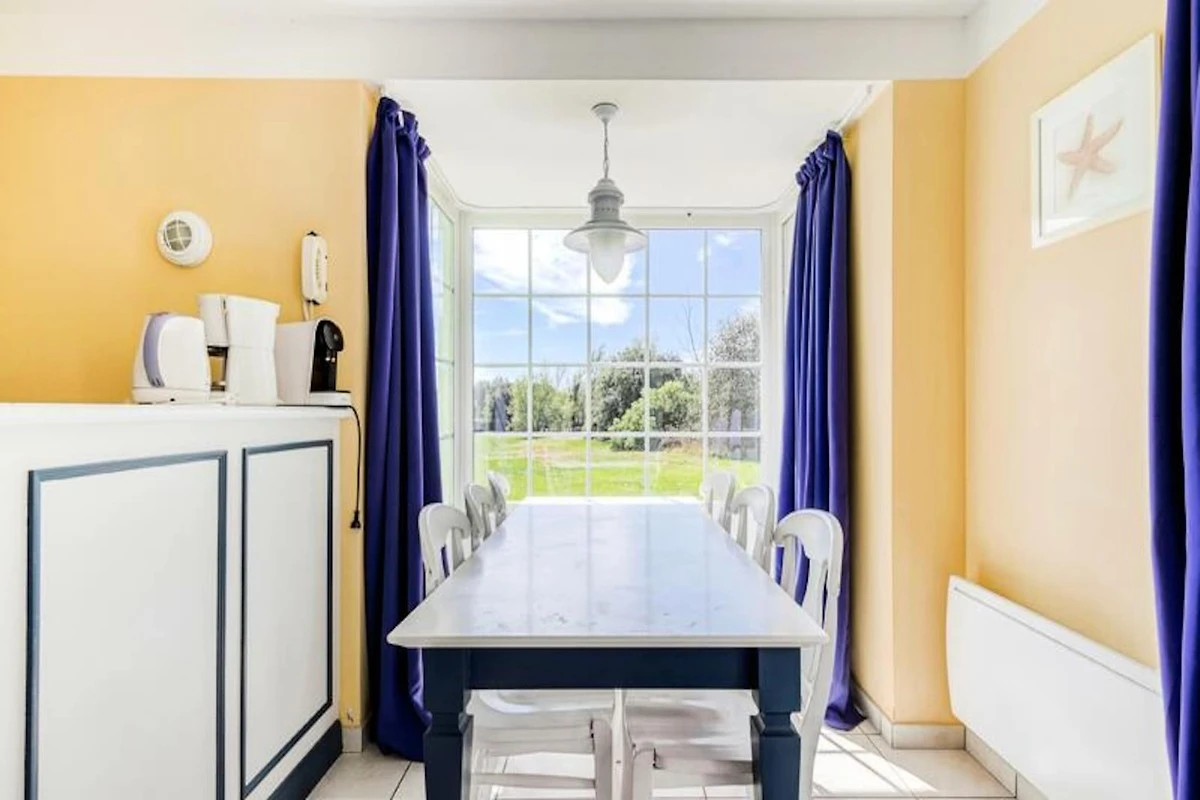 Questa casa vacanze arredata con gusto è perfetta per famiglie o gruppi fino a 8 persone. Dispone di 3 camere da letto, 2 bagni, 2 WC, un soggiorno e una cucina, per accogliere comodamente gli ospiti. Sebbene non siano menzionate politiche specifiche per gli animali domestici, è meglio verificare direttamente con la residenza. Ogni quartiere del residence Port-Bourgenay offre l'accesso ad un complesso di piscine con date di apertura variabili nel corso della stagione. L'area centrale vanta la piscina più grande con scivoli, mentre i quartieri Moulin e Bocage dispongono di piscine riscaldate e piscine per bambini.