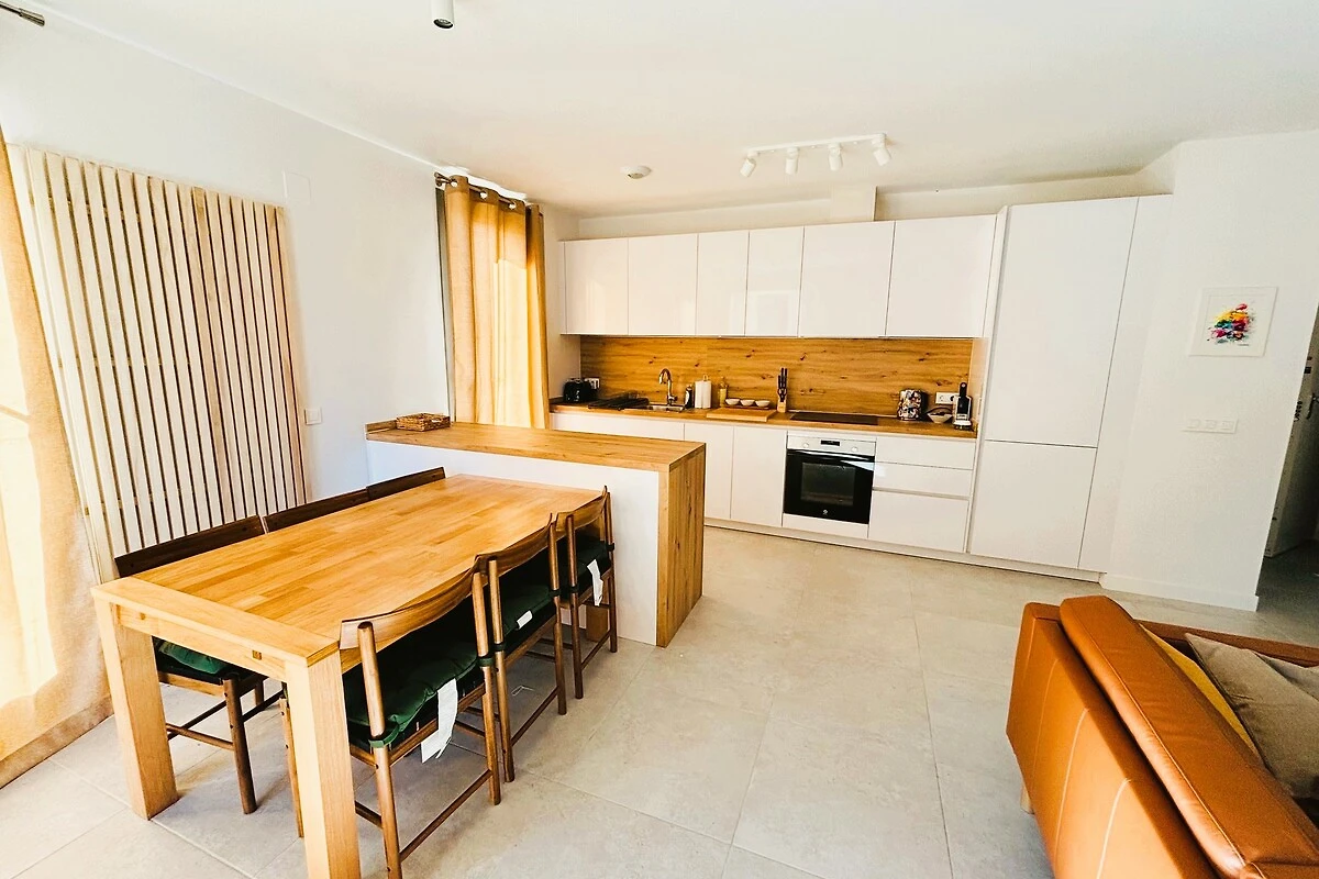 Questo straordinario appartamento moderno al piano terra unisce design elegante, massimo comfort abitativo e stile di vita mediterraneo in una nuova ed esclusiva urbanizzazione. L’appartamento colpisce per la sua ampia e luminosa disposizione degli spazi. Il elegante soggiorno con cucina a vista di design costituisce il cuore dell’immobile e si apre senza soluzione di continuità sulla terrazza coperta e sul giardino privato – perfetto per momenti di relax all’aperto, serate conviviali o colazioni al sole.