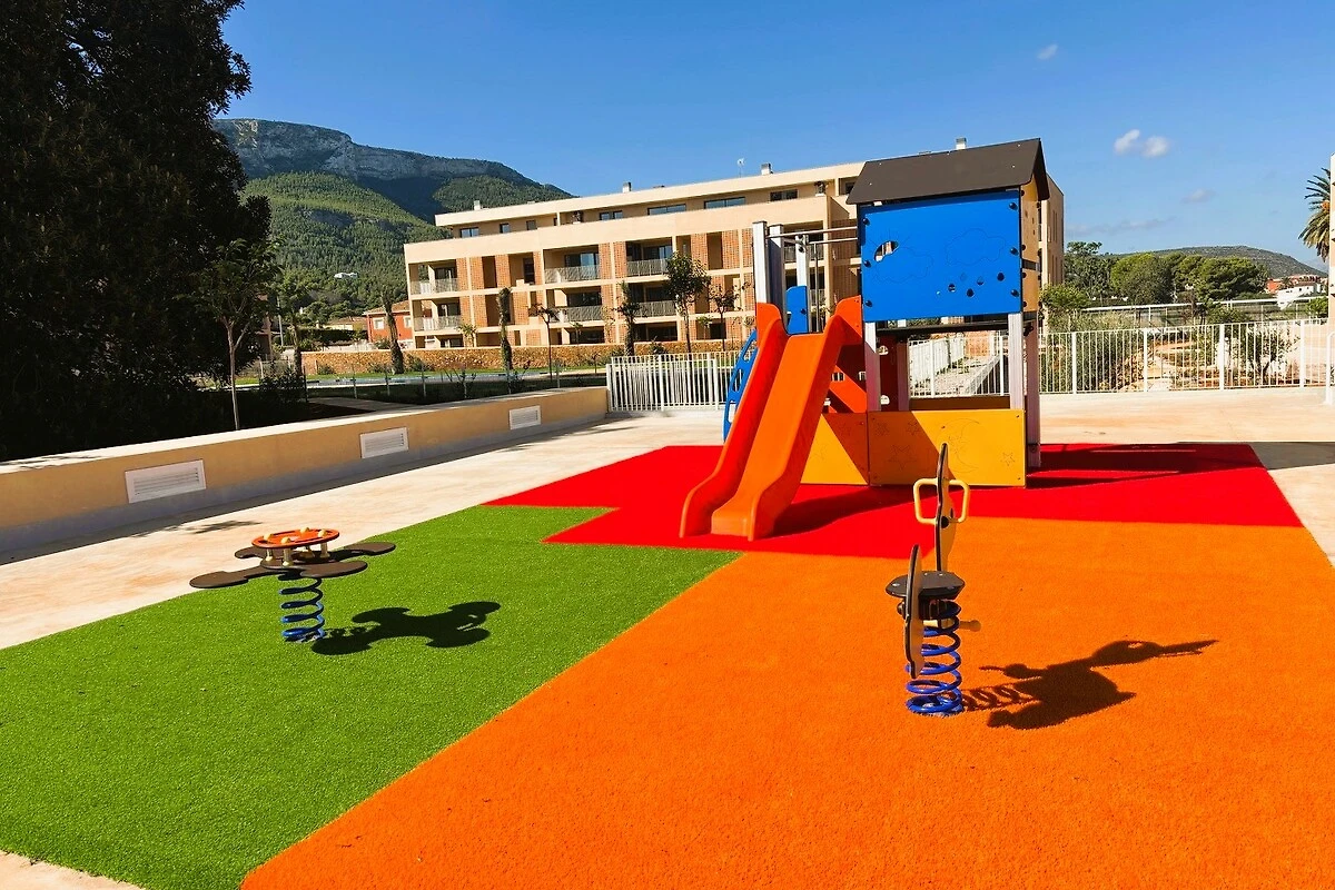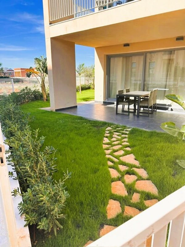 L'intero appartamento colpisce per i materiali di alta qualità, l'architettura contemporanea e le linee chiare ed eleganti, che creano un ambiente abitativo di lusso. Godetevi ore di relax sulla vostra terrazza privata o nel curato giardino con palme e tanto verde, mentre i vostri bambini si divertono nel vicino parco giochi. La grande piscina invita a rinfrescarsi nelle giornate calde e un posto auto riservato garantisce un arrivo senza stress.