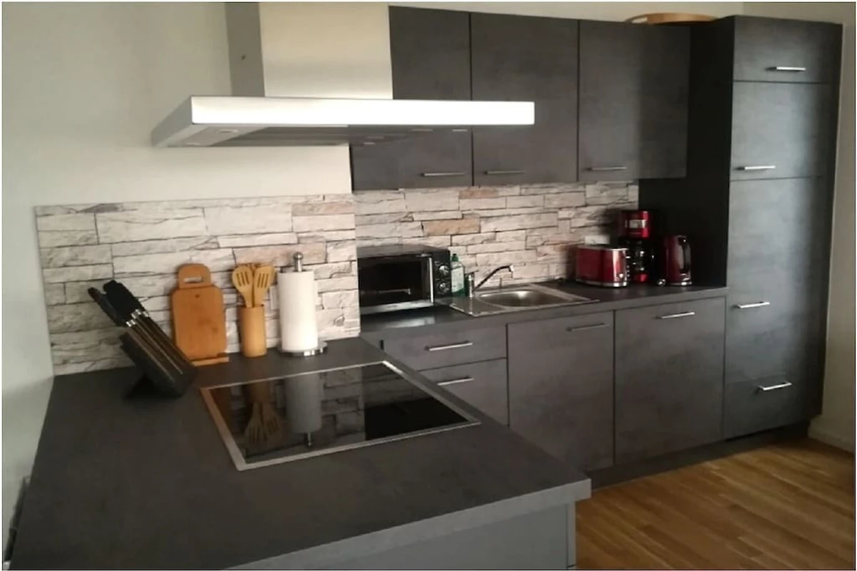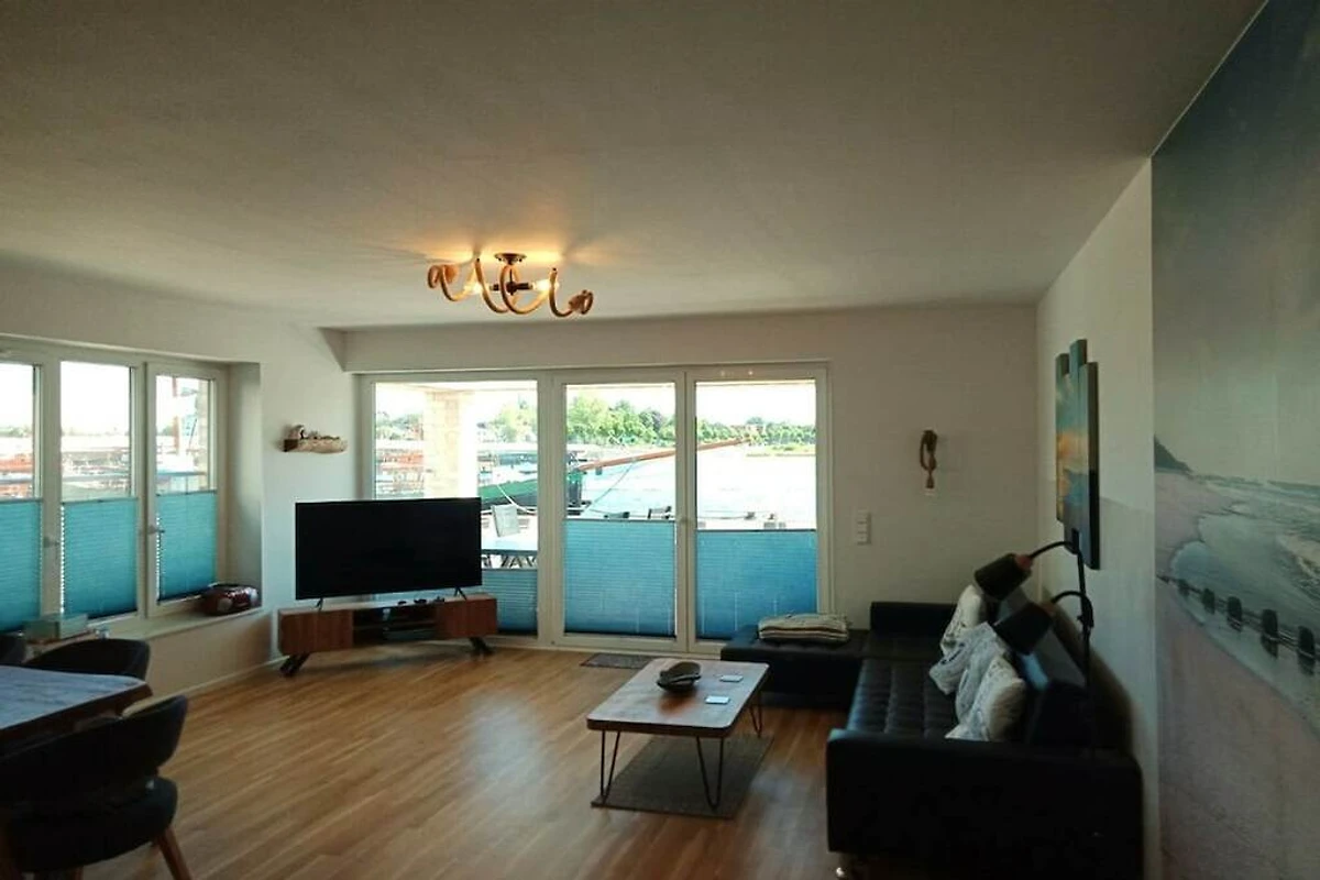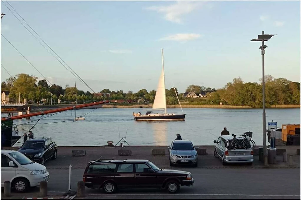 L'appartamento "Riverfront" di nuova costruzione si trova sul porto meridionale di Kappeln e vanta una vista libera sull'esclusivo ponte levatoio della città e sulle navi ormeggiate.