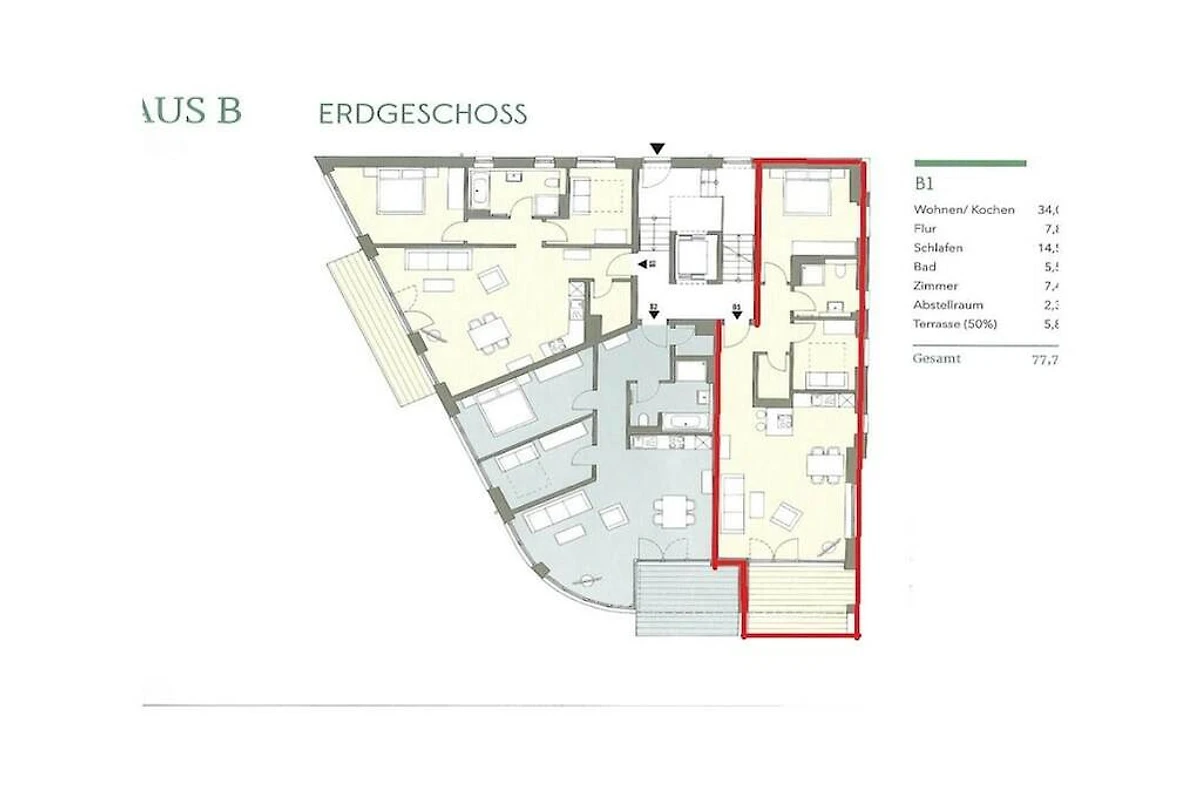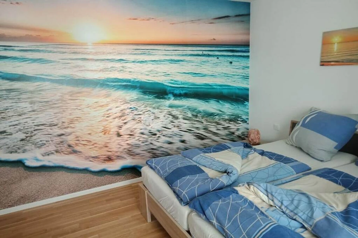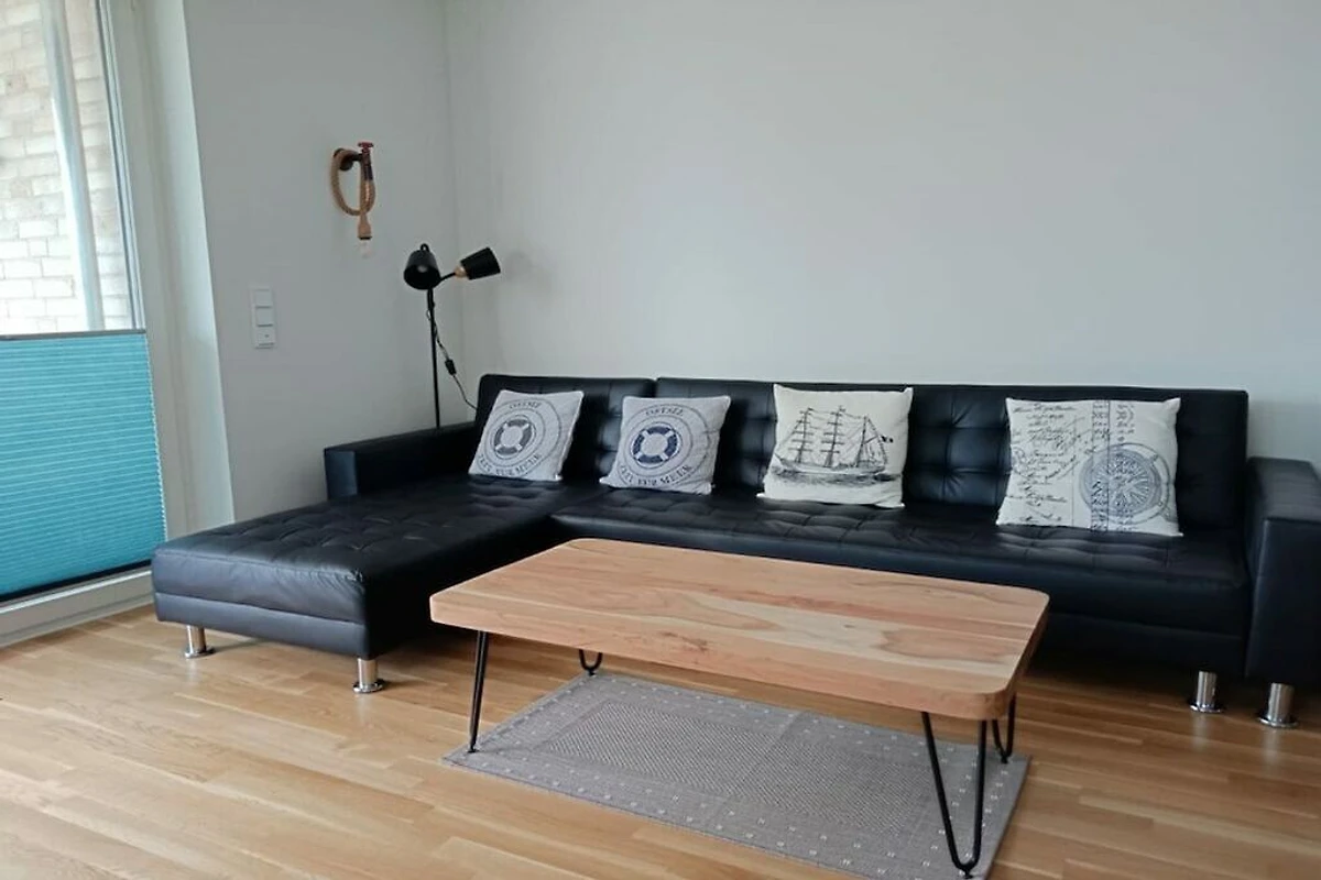 L'appartamento di 78 mq si trova al piano terra (piano rialzato) dello Speicherquartier (Quartiere dei Magazzini) e dispone di tre stanze. La luminosa zona giorno/pranzo comprende una moderna cucina attrezzata e ampie e comode sedute. Offre inoltre accesso a una terrazza privata arredata con mobili da giardino e barbecue elettrico.
