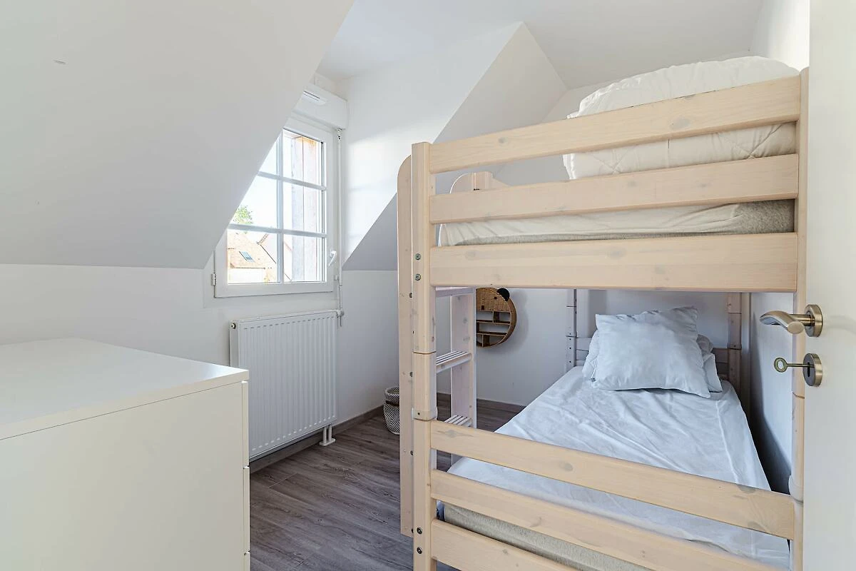 A soli 5 minuti da Deauville, questa spaziosa e accogliente casa è perfetta per famiglie o gruppi di amici. Offre 4 camere da letto (di cui una con letti a castello), 2 bagni, una luminosa zona giorno con tavolo da biliardo e un giardino soleggiato. Godetevi un soggiorno tranquillo vicino a spiagge, negozi e attività sulla splendida Côte Fleurie!