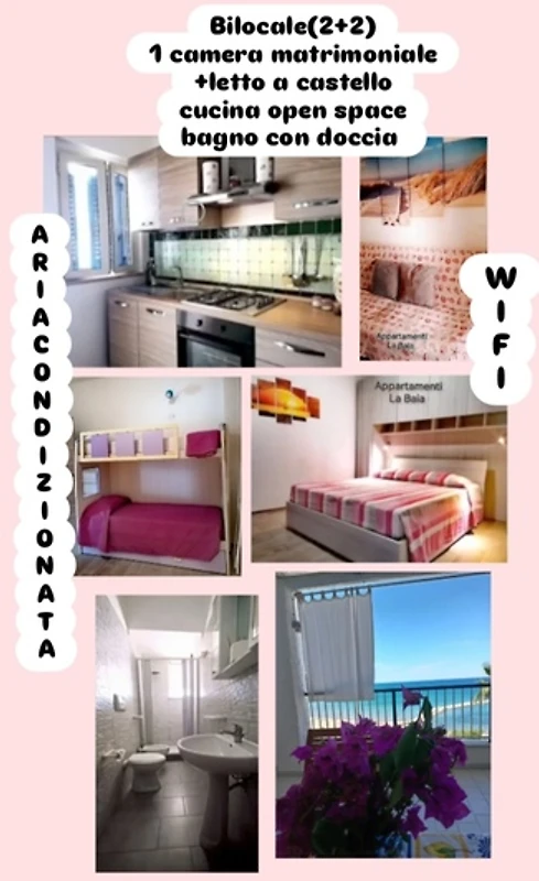 Scoprite la magia di Peschici , nel cuore della spendida Puglia , soggiornando negli appartamenti La Baia , una casa vacanza che dispone appartamenti di varie tipologie recentemente ristrutturati e completi di ogni comfort , con cucine open space , divani , camere da letto e bagni con doccia