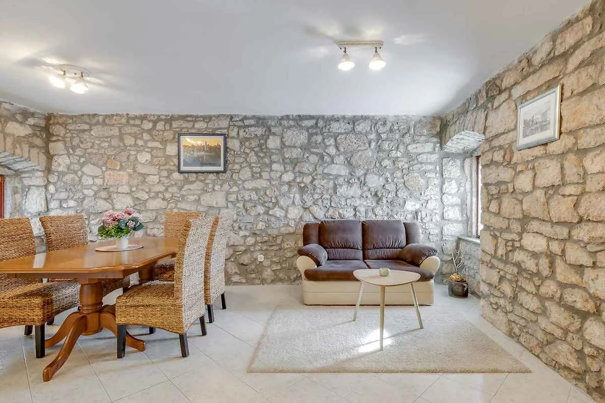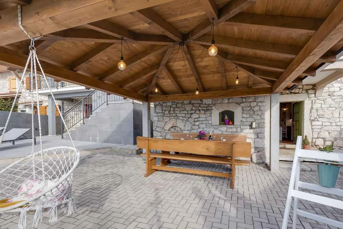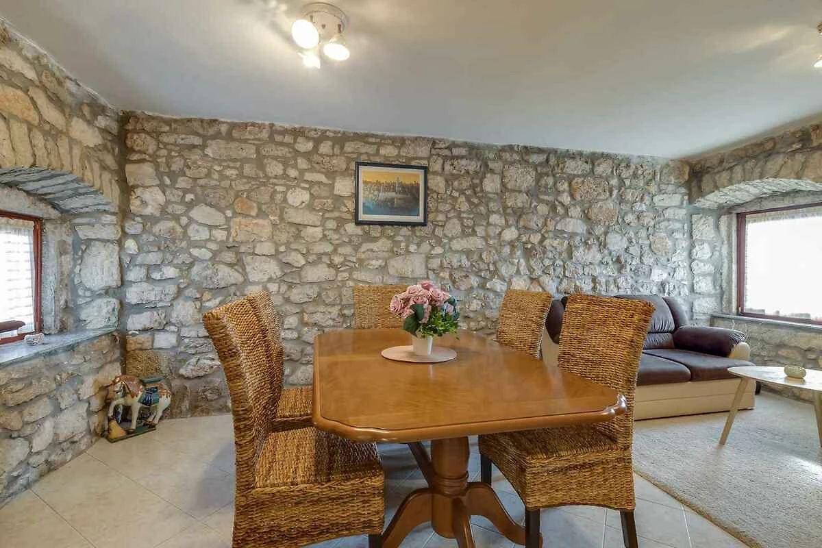 Dračevac. La casa vacanze si trova su un terreno di giardino recintato di 600 mq con prato e arbusti, delimitato da una recinzione. La casa è composta da due unità abitative separate su due piani. La casa è composta da due unità abitative separate su due piani. Ciascuna delle unità abitative al primo piano (piano) dispone di un soggiorno con cucina, tavolo da pranzo e divano, nonché di un bagno separato, mentre al secondo piano (mansarda) si trovano due camere da letto, una delle quali è una doppia con terrazza con vista sulla piscina e l’altra è una tripla, doccia/WC. L’accesso avviene tramite una strada secondaria (asfaltata). Parcheggio sulla proprietà.