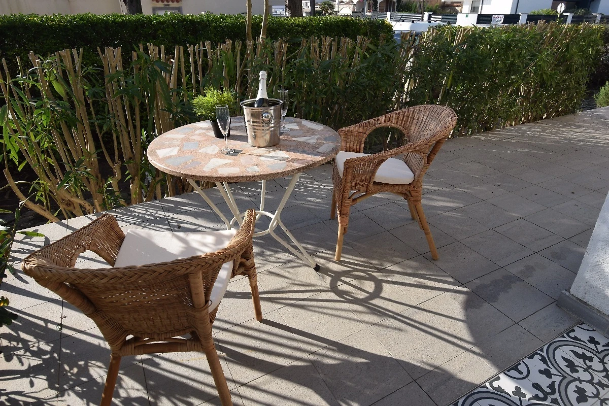 Casa vacanze vicino alla spiaggia in posizione tranquilla per fino a 5 persone con aria condizionata, TV satellitare e internet. Bel giardino mediterraneo con lettini prendisole e barbecue, internet (W-Lan), 2 camere da letto ciascuna con bagno privato, terrazza coperta, 2 posti auto.