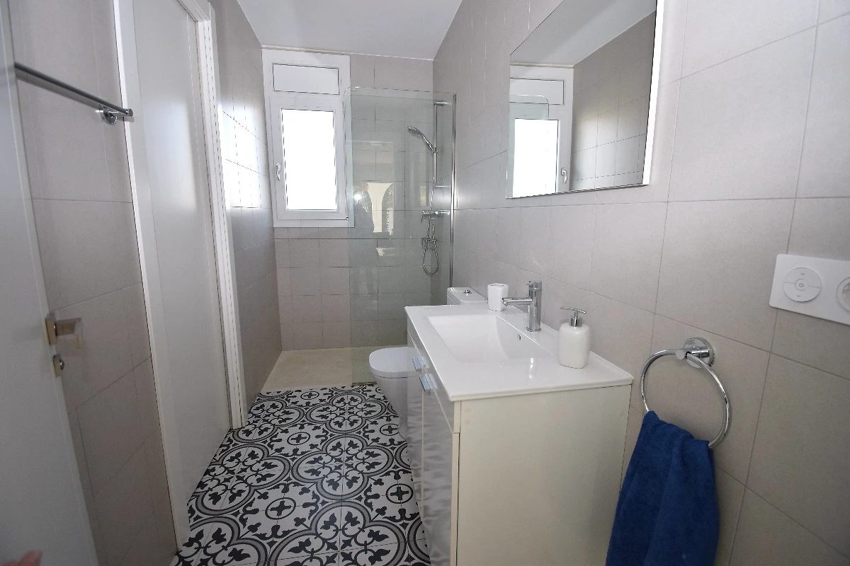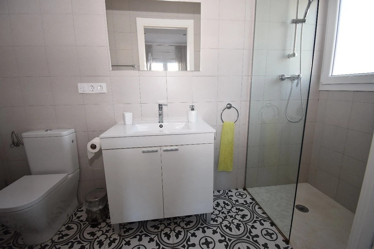 1 suite con letto matrimoniale (160 cm di larghezza), aria condizionata, tapparelle, armadio e bagno privato con doccia a filo pavimento, WC, lavabo ecc. Questo bagno ha anche accesso dal soggiorno. 1 suite con letto matrimoniale (160 cm di larghezza), aria condizionata, tapparelle, armadio e bagno privato con doccia a filo pavimento, WC, lavabo ecc.