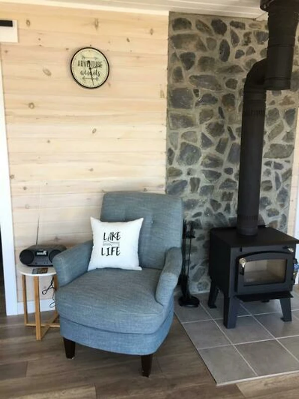 Sul terreno si trovano un focolare, una panchina da picnic canadese, comodi lettini prendisole e alcune sedie in legno. Gli interni sono di altissima qualità, con cucina nuovissima o letto boxspring nuovo di zecca. Un'ampia vetrata garantisce un soggiorno e una zona pranzo pieni di luce e una vista lago impareggiabile. Nei giorni più freschi, la stufa a legna assicura un calore accogliente.