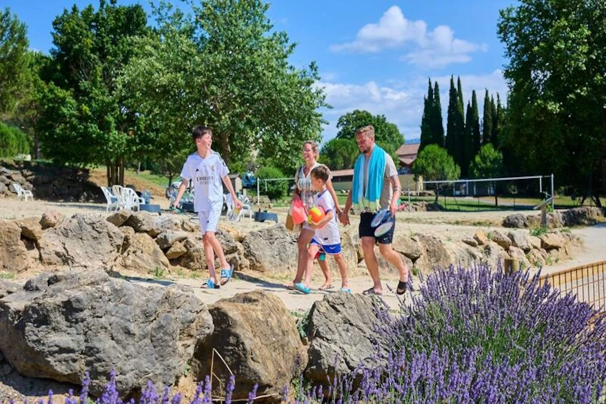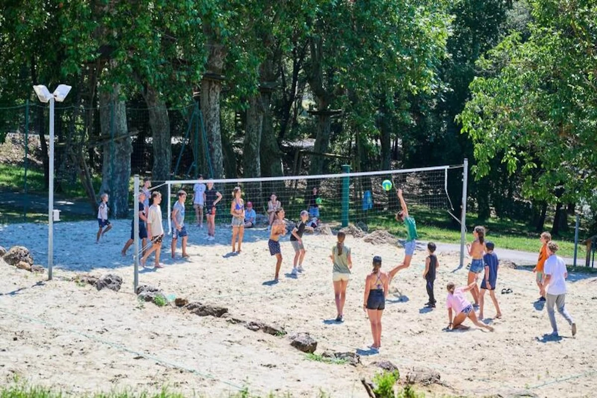 Il terreno è spazioso e rigoglioso, offrendo molta privacy e verde per godersi le attività all'aperto. I servizi in loco includono una piscina, campi da tennis e un'area giochi per bambini, mentre il noleggio di biciclette e il ping-pong offrono ulteriori opzioni per il tempo libero. Un bar e un ristorante si trovano nelle vicinanze, rendendo la cena fuori un gioco da ragazzi.