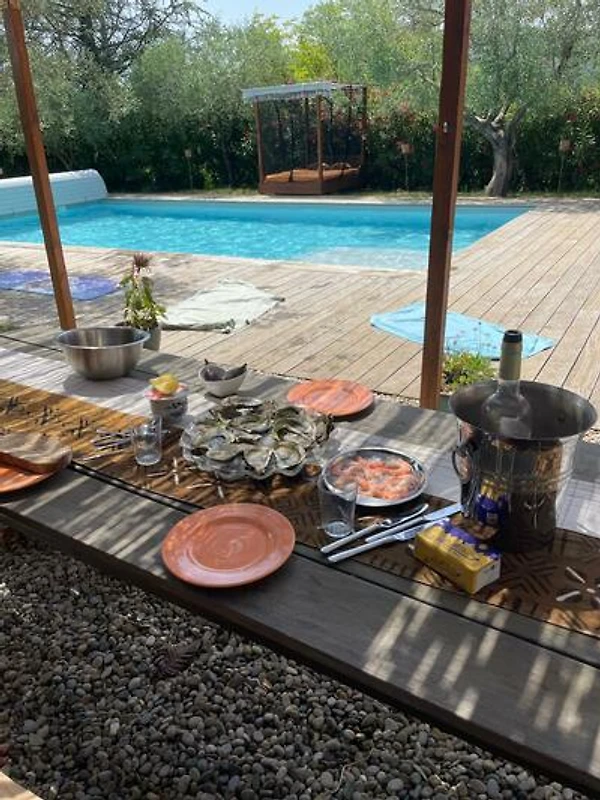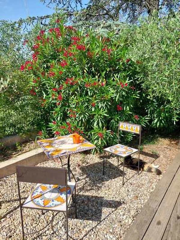 A luglio e agosto affittiamo solo l’intera casa. In primavera e in autunno affittiamo camere con o senza colazione e camere per weekend benessere con massaggi, vi preghiamo di informarvi sul nostro sito web. Il nostro paradiso è adatto a famiglie e amanti della natura da 8 a max. 10 persone. Su 140 m² di superficie abitabile vi aspettano quattro confortevoli camere da letto e due moderni bagni, dotati di doccia e vasca da bagno, asciugacapelli e ampi lavandini. La cucina completamente attrezzata offre tutto ciò di cui avete bisogno per una vacanza rilassante: dalla lavastoviglie, piano cottura a gas, forno, steamer, al bollitore e macchina da caffè fino alla lavatrice, non manca nulla. L’ampia terrazza invita a pasti in compagnia e serate conviviali al barbecue, mentre potrete rilassarvi nel curato giardino o rinfrescarvi in piscina. Per le famiglie con bambini sono disponibili un letto per bambini e/o neonati e un seggiolone. Grazie alla climatizzazione, potrete godere di angenehmen Temperaturen anche nei giorni caldi. WLAN e TV offrono intrattenimento per grandi e piccoli. La biancheria da letto è fornita e per i vostri veicoli è disponibile un parcheggio recintato. La villa è riservata esclusivamente ai non fumatori, i cani non sono ammessi. I nostri due gatti accompagneranno il vostro soggiorno e saranno felici di ricevere coccole. In wenigen Fahrminuten erreichen Sie die Grotte Chauvet, die Tropfsteinhöhle Aven d'Orgnac, das mittelalterliche Schloss Vogüe oder unternehmen eine Kajakfahrt auf der Ardèche. Ebenso empfehlenswert sind die umliegenden Märkte, auf denen zahlreiche regionale Produkte direkt vom Erzeuger angeboten werden. Godetevi la vostra pausa immersi nella natura, con una splendida vista sul paesaggio circostante con i suoi vigneti, campi di lavanda e cereali – il luogo perfetto per ricaricare le energie, praticare attività sportive e vivere momenti di vacanza indimenticabili.