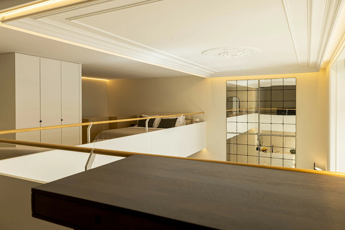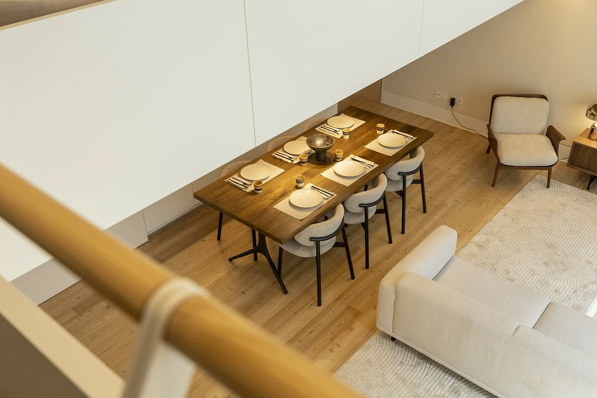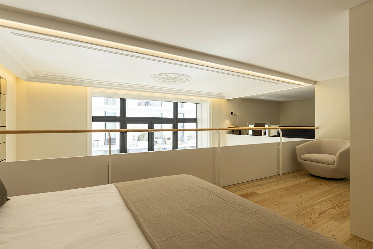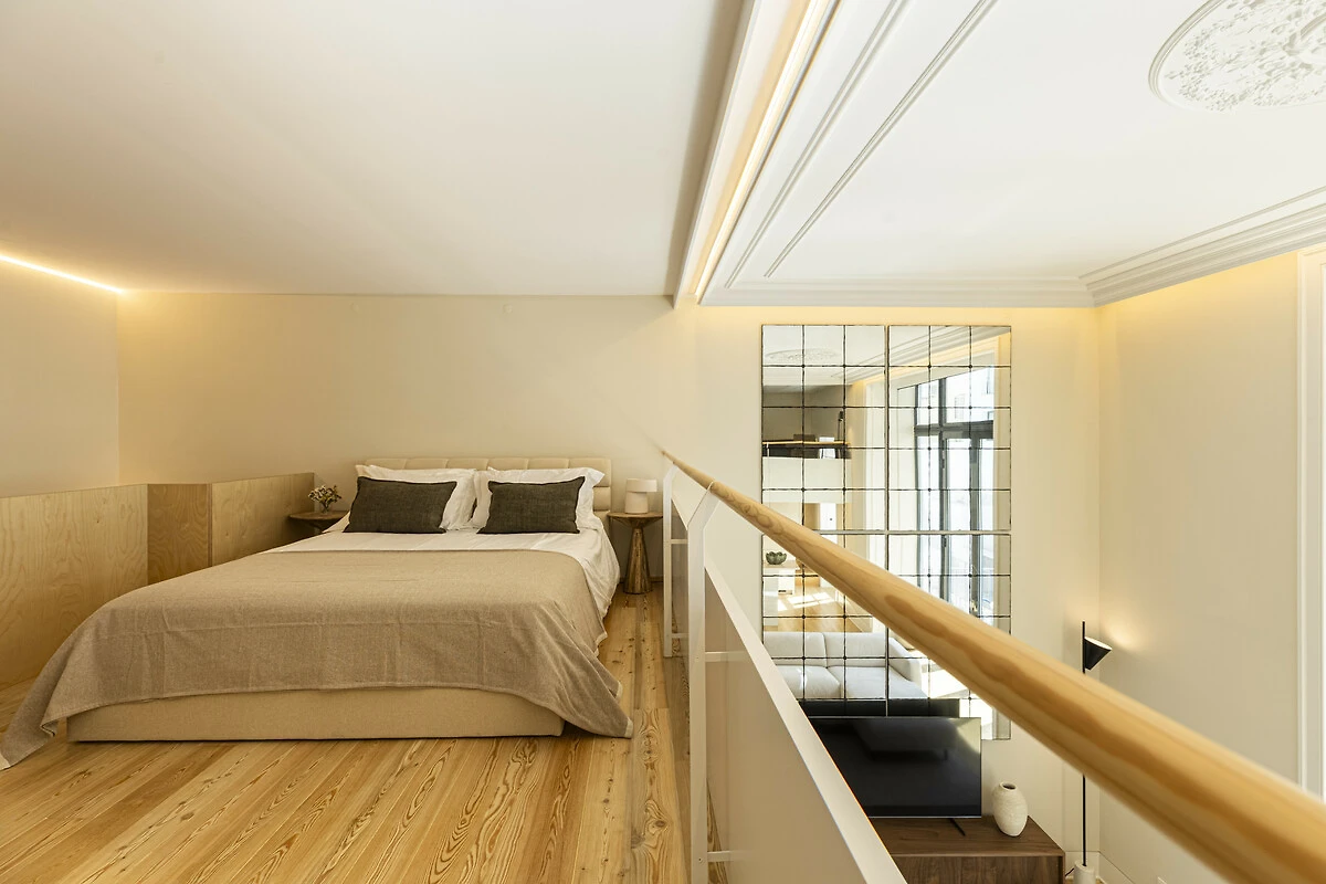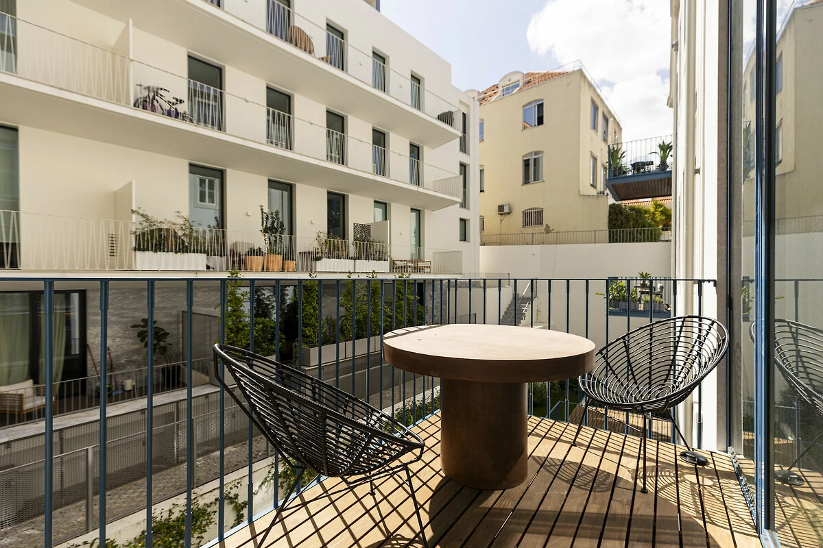 Un balcone privato si fonde armoniosamente con lo spazio living principale, ideale per un caffè mattutino tranquillo o un aperitivo serale. Quest'area esterna sopraelevata offre privacy e prospettiva, perfetta per godersi la luce soffice e le brezze gentili di Lisbona. La disposizione offre il lusso dell'indipendenza nel cuore della città. Il Loft di Lisbona permette agli ospiti di godere di piena autonomia e discrezione durante il loro soggiorno. Ogni dettaglio, dall'illuminazione alle finiture, è stato progettato per offrire comfort e armonia visiva in un ambiente residenziale esclusivo.