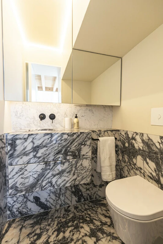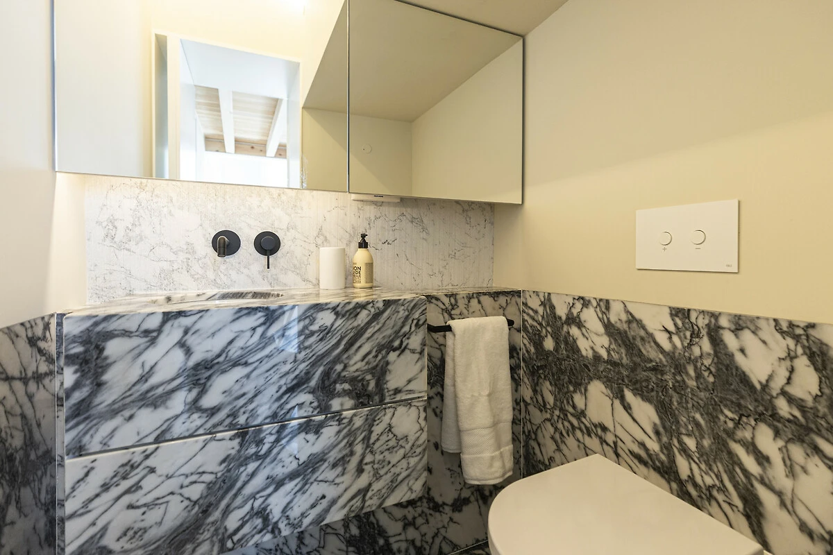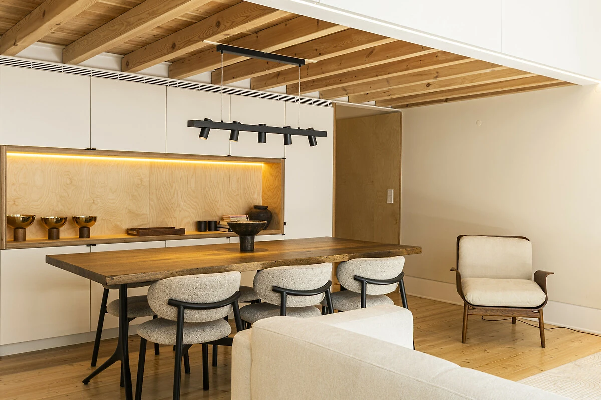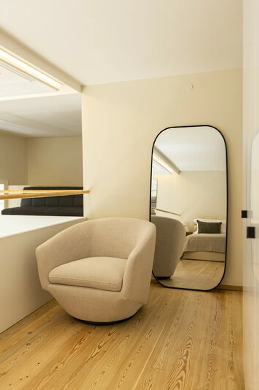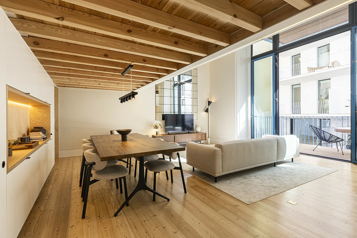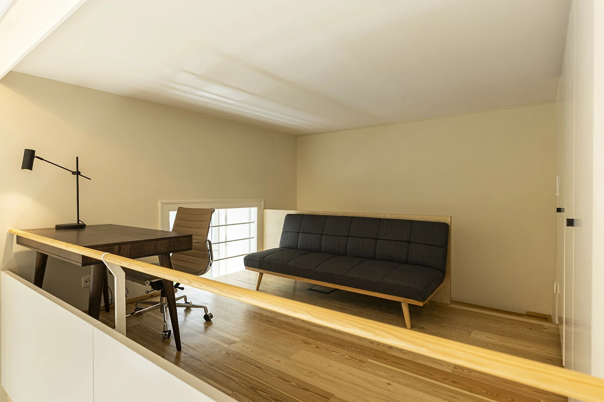 Un balcone privato si fonde armoniosamente con lo spazio living principale, ideale per un caffè mattutino tranquillo o un aperitivo serale. Quest'area esterna sopraelevata offre privacy e prospettiva, perfetta per godersi la luce soffice e le brezze gentili di Lisbona. La disposizione offre il lusso dell'indipendenza nel cuore della città. Il Loft di Lisbona permette agli ospiti di godere di piena autonomia e discrezione durante il loro soggiorno. Ogni dettaglio, dall'illuminazione alle finiture, è stato progettato per offrire comfort e armonia visiva in un ambiente residenziale esclusivo.