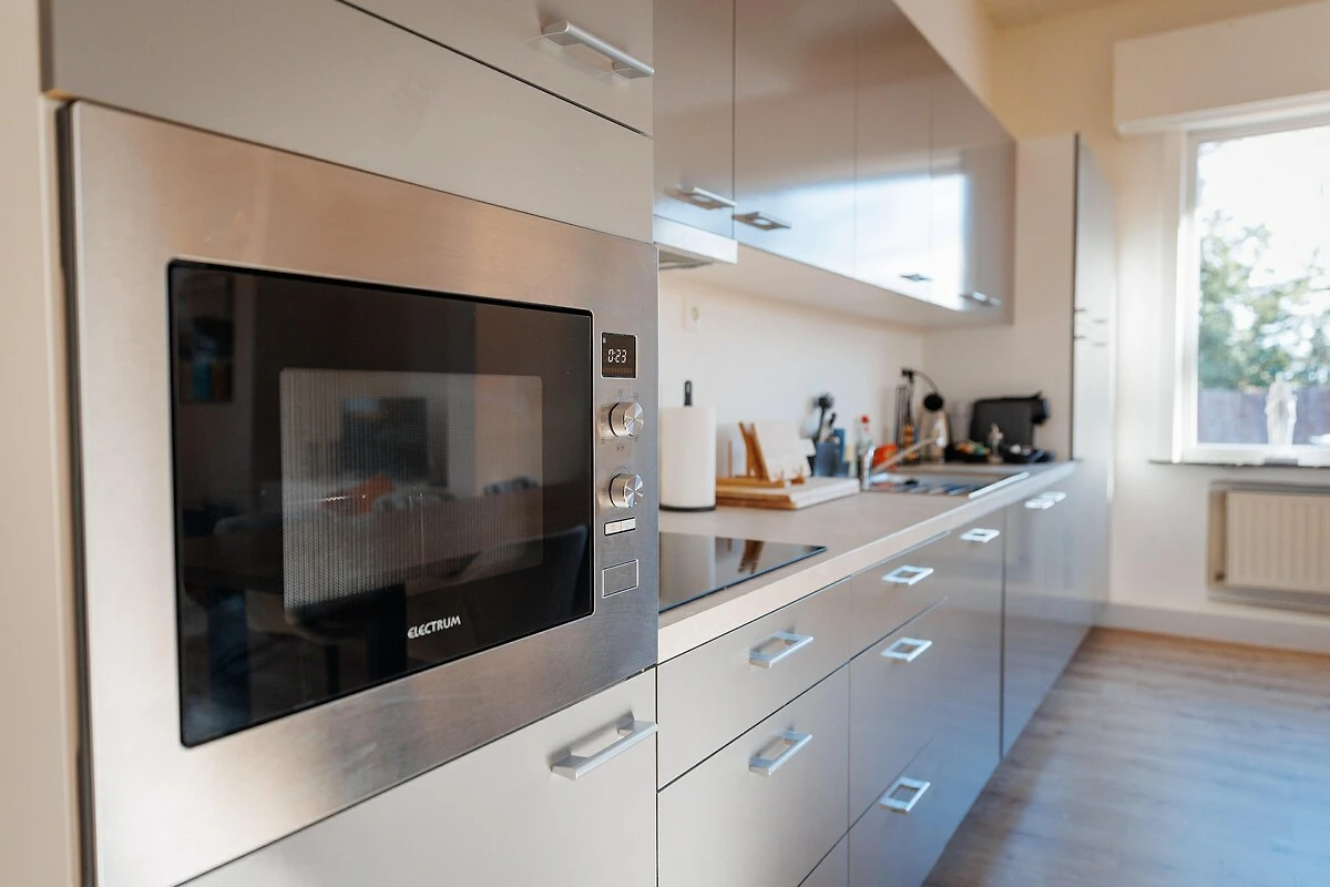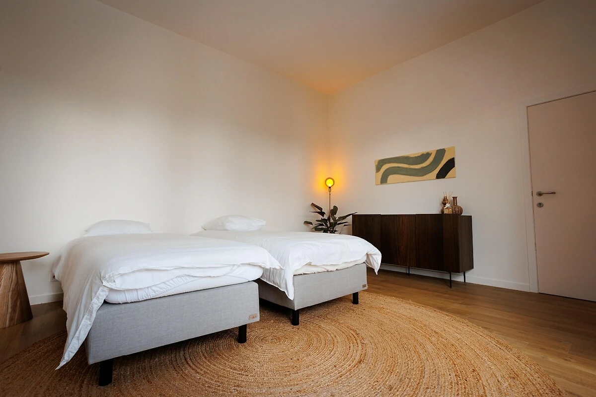 Internamente, l'appartamento è spazioso e ben organizzato. Il soggiorno dispone di una Smart TV, comode sedute e una zona pranzo, perfetta per rilassarsi dopo una giornata fuori. Un'ampia cucina ben attrezzata con un secondo tavolo da pranzo per sei, macchina da caffè, lavastoviglie e frigorifero con congelatore semplifica la preparazione dei pasti. La zona notte comprende una camera matrimoniale e una camera doppia con due letti singoli, oltre a un bagno completo con vasca, doccia e doppio lavabo. Un WC separato e una tranquilla zona studio contribuiscono al pratico comfort della casa.