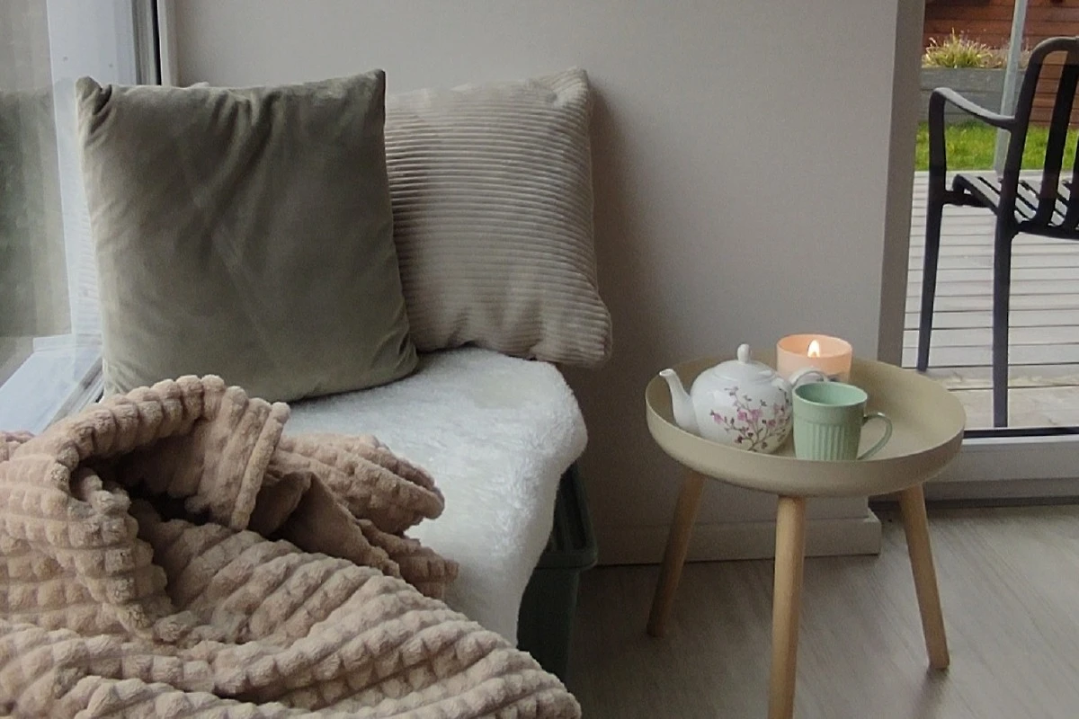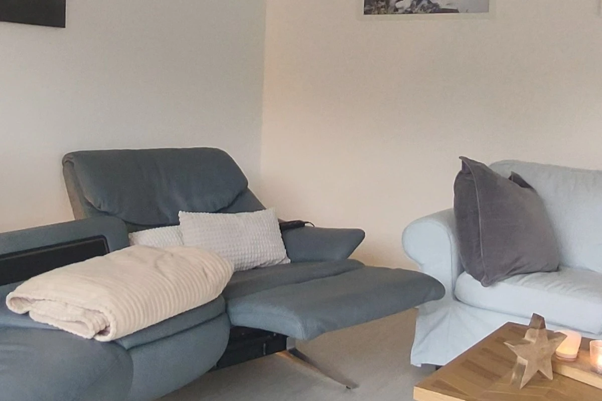 All'interno vi attende una zona giorno open space con camino, che nelle giornate più fresche garantisce un piacevole calore. La cucina completamente attrezzata con lavastoviglie, microonde, bollitore e macchina da caffè non lascia nulla a desiderare – qui potrete cucinare e gustare i pasti insieme. Per le famiglie è disponibile un seggiolone per bambini piccoli. Biancheria da letto fresca, lavatrice, ferro da stiro e asciugacapelli offrono un comfort aggiuntivo.