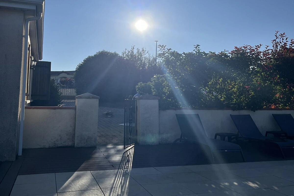 Uscite e la casa prende davvero vita. La piscina privata diventa il cuore dei caldi pomeriggi, circondata da lettini prendisole per rilassarsi tra un tuffo e l'altro. Due terrazze, di cui una ideale per l'ombra, creano incantevoli angoli per colazioni, lunghi pranzi e barbecue serali. Una doccia esterna aggiunge comfort dopo una nuotata, mentre il barbecue e il giardino invitano a vivere all'aria aperta. Il parcheggio privato è disponibile in loco.