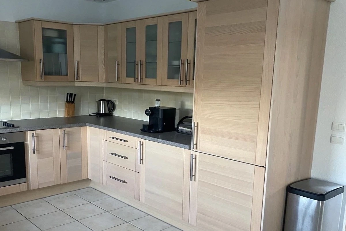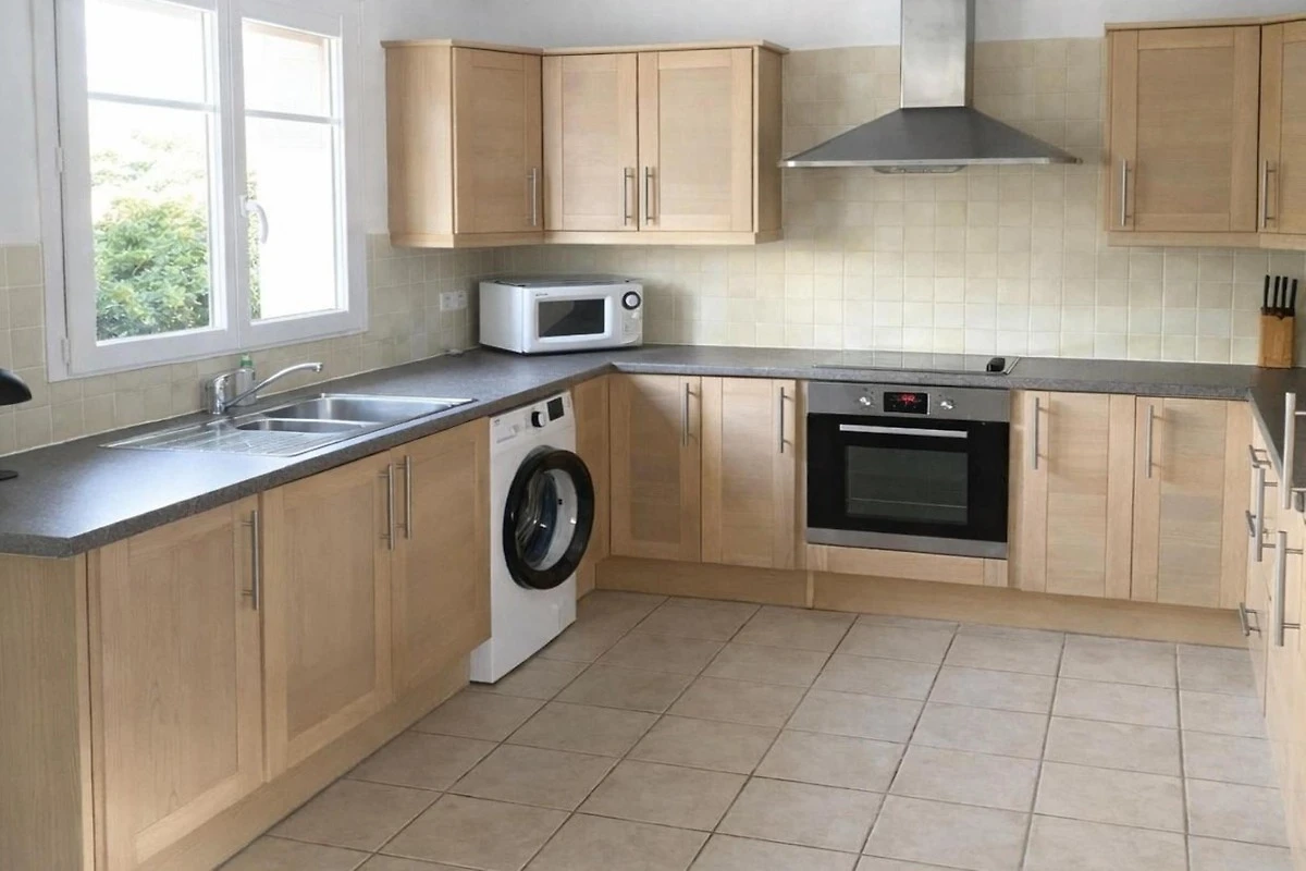 Al piano terra, la casa si apre su una luminosa zona giorno e pranzo con smart TV, comode sedute e un tavolo da pranzo per i pasti in comune. La cucina a vista è pratica e ben attrezzata con macchina da caffè, forno a microonde e frigorifero con congelatore, rendendo semplice la preparazione dei pasti durante il soggiorno. La zona notte comprende tre camere da letto: una con letto matrimoniale e due che possono essere allestite con letti matrimoniali o singoli, a seconda delle esigenze del gruppo. Un moderno bagno completo e una toilette separata aggiungono comfort quotidiano.
