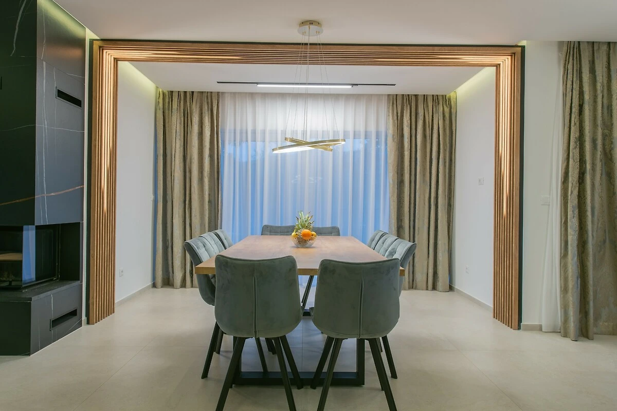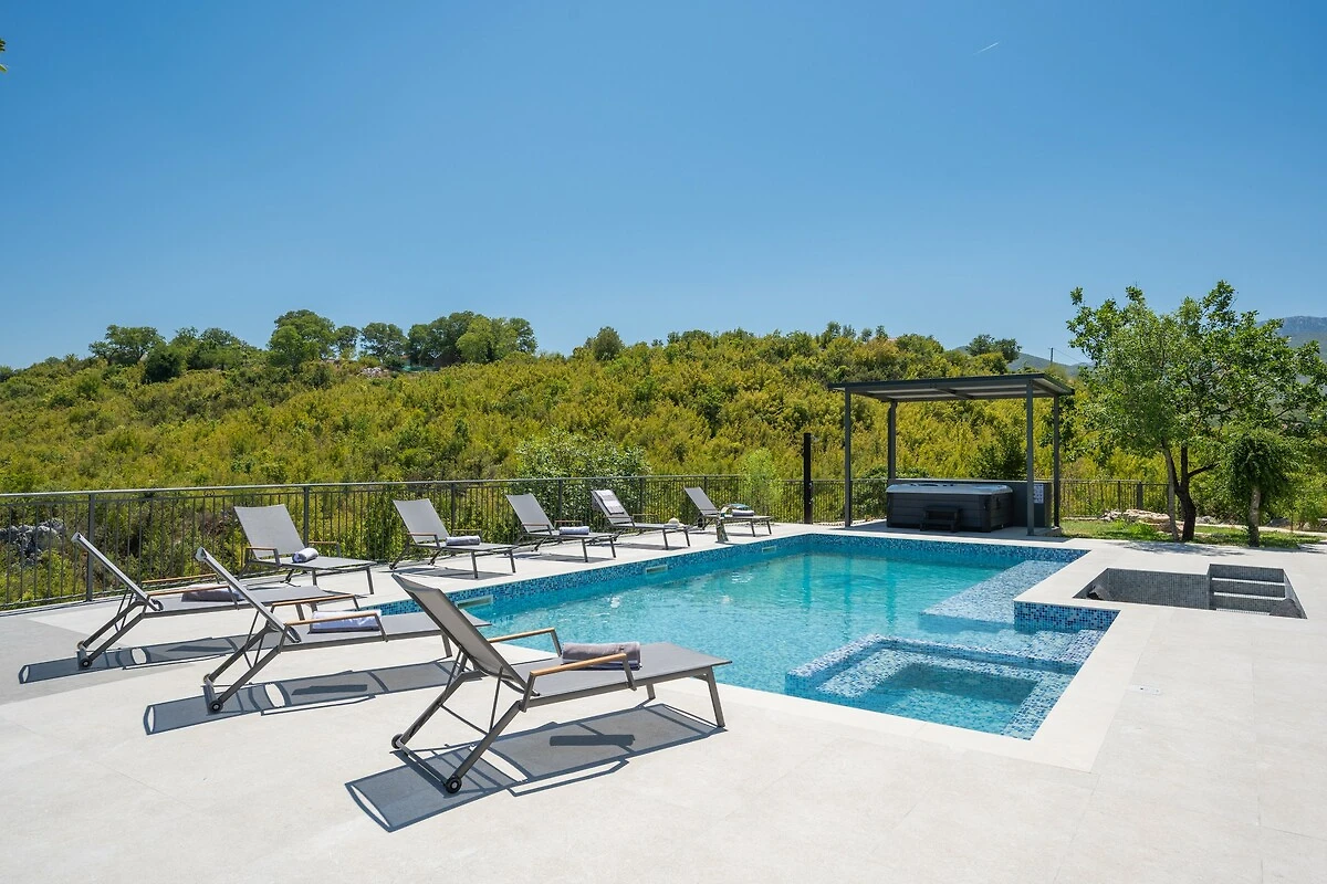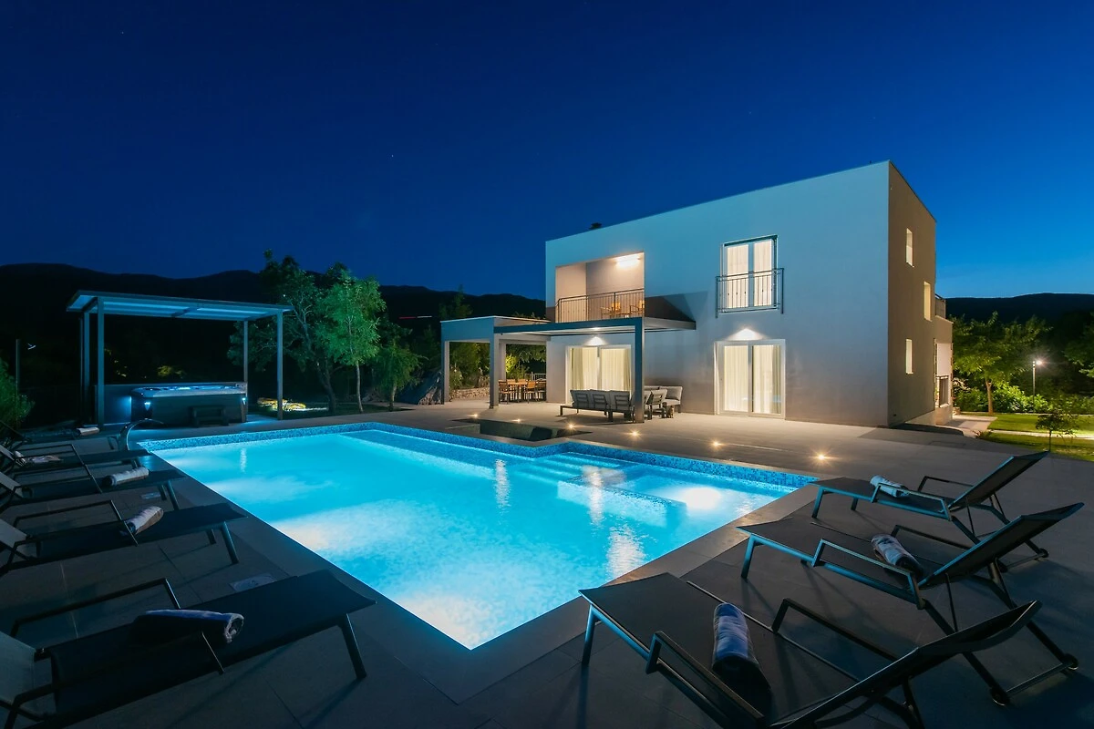 Benvenuti nella nuova Villa River Rose a Dugopolje, nella splendida campagna di Spalato! Questa spaziosa casa vacanze offre 230 m² di spazio per un massimo di 8 ospiti ed è il luogo ideale per una rilassante vacanza in famiglia, una romantica fuga di coppia, un soggiorno vario per single o una vacanza attiva in montagna. Quattro confortevoli camere da letto e altrettanti bagni garantiscono privacy e comfort. Godetevi le giornate di sole sul balcone o in giardino, rinfrescatevi in piscina e utilizzate il barbecue per serate conviviali. Per l’intrattenimento ci sono ping pong e TV satellitare, mentre il camino crea un’atmosfera accogliente nelle giornate più fresche. La cucina completamente attrezzata con piano cottura a induzione, forno, microonde, lavastoviglie, frigorifero, congelatore, macchina da caffè, bollitore e tostapane non lascia nulla a desiderare. Biancheria da letto, asciugamani, lavatrice, asciugatrice, ferro da stiro, asse da stiro, asciugacapelli e aspirapolvere sono disponibili. Per le famiglie sono a disposizione un lettino e un seggiolone. Lettini prendisole, mobili da giardino, ombrellone e un parcheggio sicuro completano l’offerta. La villa è climatizzata, dispone di Wi-Fi e di una cassaforte. I non fumatori possono godersi escursioni a piedi, in bicicletta, nuoto ed equitazione – per una vacanza indimenticabile!