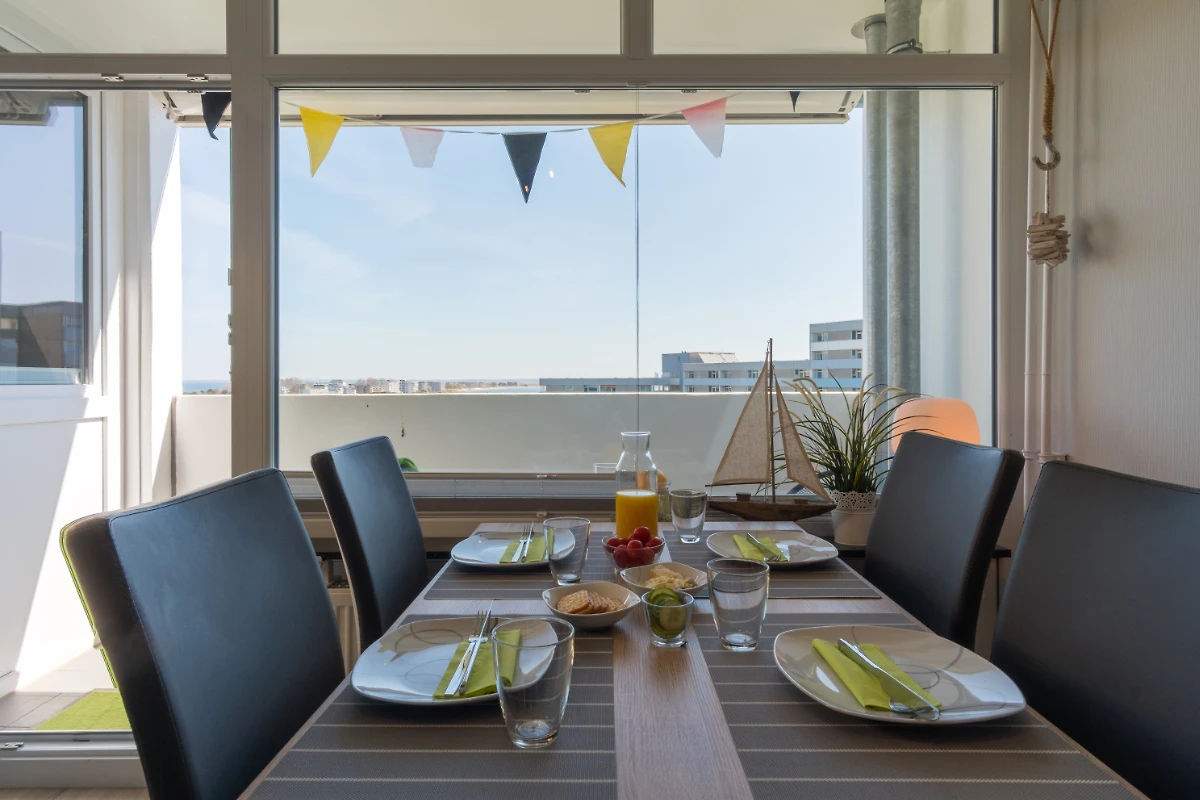 Im großen und ganzen ist die Wohnung in Ordnung. Leider ist die Küche fürb4 Personen sehr spärlich an Besteck Gläsern und Geschirr ausgestattet . Der beschriebene Backofen was für uns ein Buchungspunkt dieser Wohnung war ist leider nur ein kleiner Pizzaofen kein vollwertiger Backofen . Der Ausblick ist wirklich sehr schön Binnensee und Ostsee wird nur von den Tauben die ihr Ei auf den Balkon gelegt haben und dem Schwalbennest auf der Markiese getrübt .