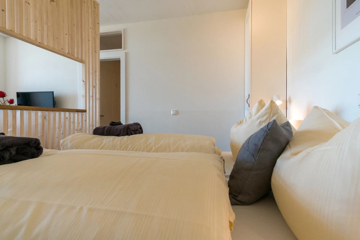 Die Wohnung besticht auf den ersten Blick mit ihrer einzigartigen Aussicht. Man blickt von ganz oben auf wunderschöne Felder und das Meer. Durch die Ausrichtung des Balkons kann man von morgens früh bis abends die Sonne genießen. Charlotte und Sebastian haben die Wohnung wirklich mit sehr viel Liebe und handwerklichem Geschick eingerichtet. Alles hat seinen Platz und ist auch noch schön anzusehen. Wir waren zu dritt eine Woche im Spätsommer vor Ort und hatten eine super Zeit. Die Wohnung wirkt durch die Aufteilung deutlich größer. Die gesamte Anlage ist sehr gepflegt und auch bei voller Belegung überraschend ruhig. Der Weg zum Strand könnte kaum besser sein. Auch unsere dreijährige Tochter hat ohne Probleme und mit Freude gemeistert. Wir werden auf jeden Fall wieder kommen!