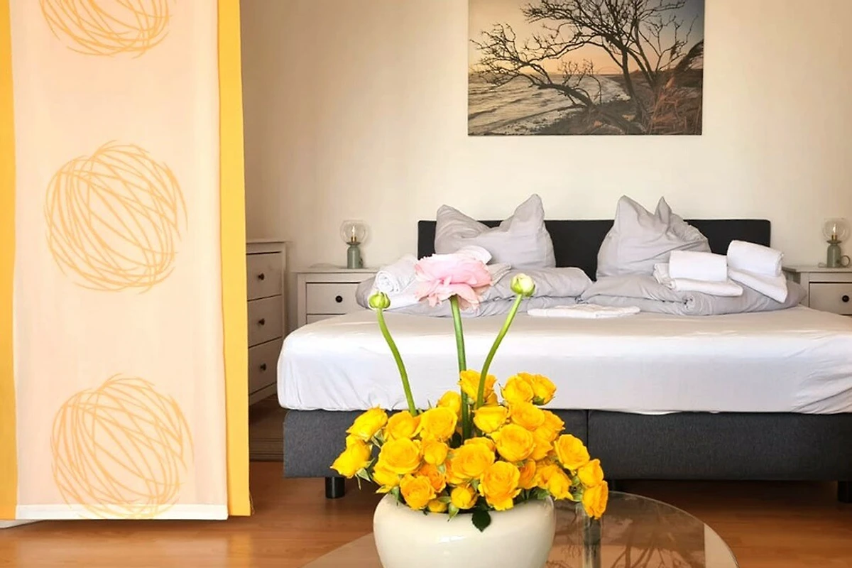 Eine sehr schöne Ferienwohnung. Besonders guter Schlafkomfort durch Boxspringbett. Zu verbessern wäre die Verdunkelungsmöglichkeit der Fenster.