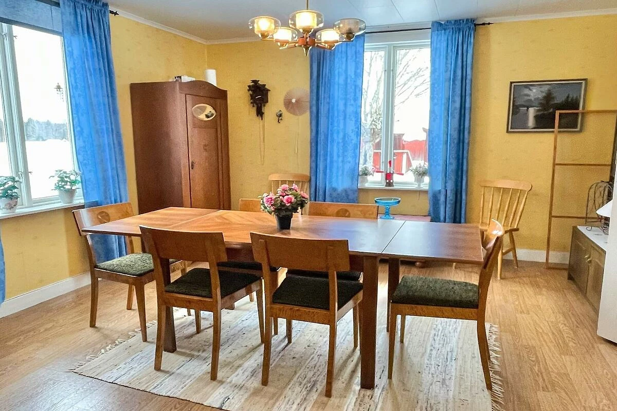 , Sala da pranzo, Cucina separata(mobile cucina(elettrico), caffettiera, forno a microonde, lavastoviglie, frigo con congelatore, acqua dal pozzo), Soggiorno/camera da letto(TV(canali TV svedesi)), Camera da letto(2x letto singolo, letto matrimoniale), Camera da letto(2x letto singolo), Camera da letto(2x letto singolo), Bagno(lavabo, doccia, WC), riscaldamento(elettrico), giardino, mobili da giardino, parcheggio