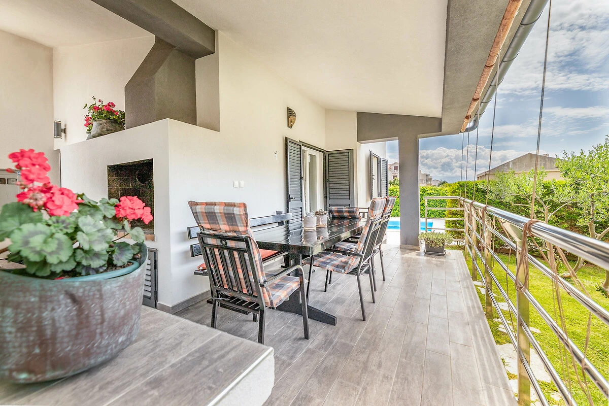 Un’atmosfera speciale offre la piscina privata, l’ampia terrazza con barbecue e il giardino con ulivi, dove è facile dimenticare il tempo. I bambini hanno spazio per giocare, mentre gli adulti godono della tranquillità e delle calde serate estive. Sono a disposizione anche due posti auto privati all'interno della struttura.