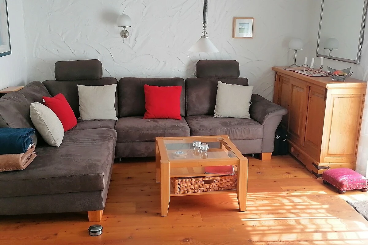 Soggiorno con zona pranzo, angolo salotto accogliente, moderna cucina compl. cucina attrezzata, bagno (doccia)