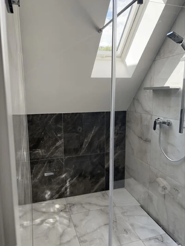 Due bagni - il bagno è elegante, con doccia, lavabo con mobile e un asciugacapelli, WC. Nel corridoio si trova un grande armadio, appendiabiti, grande specchio, paravento. Avete a disposizione un aspirapolvere e prodotti per la pulizia (spugna, detersivo per piatti).