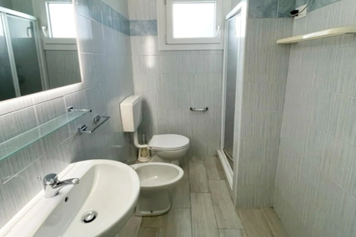 Ogni appartamento dispone di un luminoso e funzionale soggiorno con divano letto, perfettamente collegato a una cucina ben attrezzata, che offre tutto il necessario per pasti rilassanti a casa. Le zone notte includono una camera matrimoniale e una seconda camera con due letti singoli, offrendo flessibilità per diverse tipologie di gruppi. Un bagno moderno con doccia, TV, aria condizionata e lavatrice aggiunge comfort quotidiano.